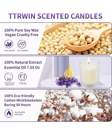 TTRWIN Lavender Scented Candle in Glass Jar 200g Natural Soy Wax Candles 50h Long Lasting Burning Aromatherapy Gift for Women Home Scented for Christmas Valentine's Day