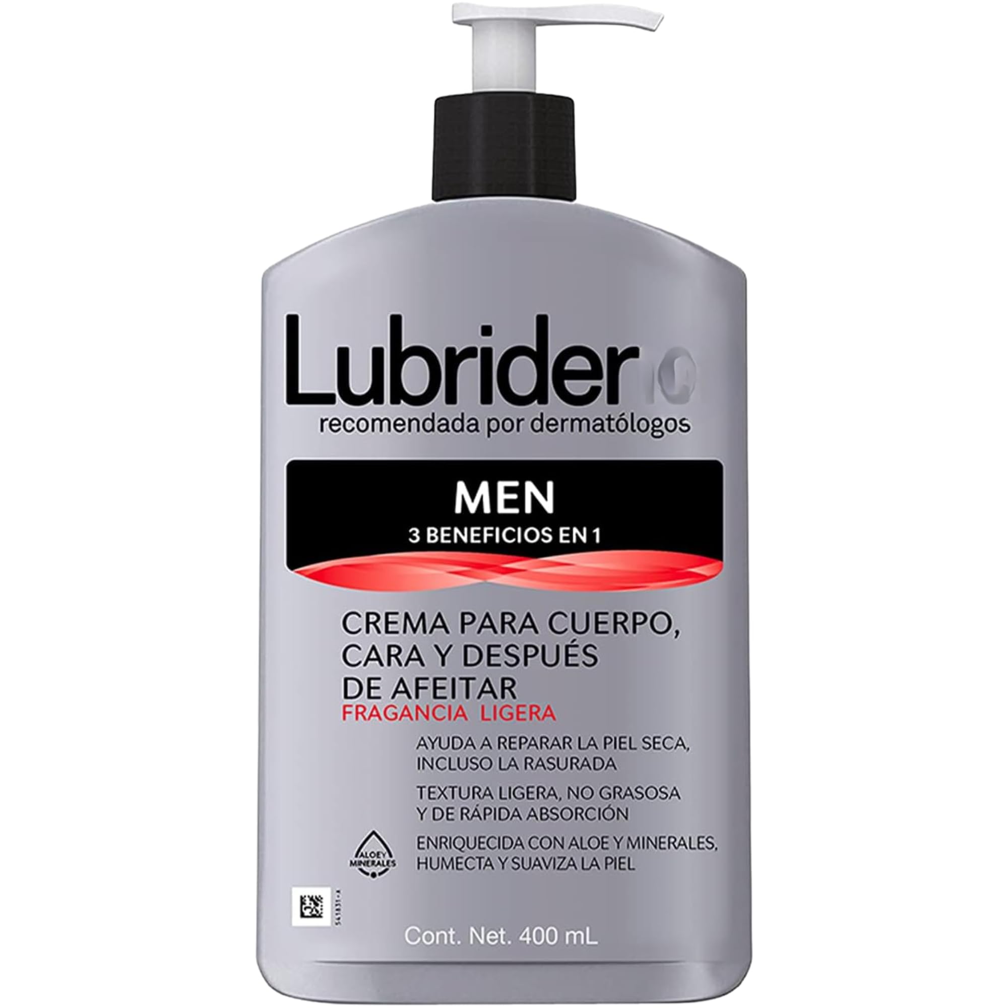 Introducing the Lubrider Advanced Hydration Moisturizer, a premium solution designed to cater to all your skin's moisturizing needs. This versatile moisturizer is perfect for use as a body, face, and after-shave cream, ensuring your skin remains hydrated, smooth, and revitalized throughout the day. With its light fragrance, this moisturizer is specifically formulated for men who seek a refreshing and effective skin lotion moisturizer. Lubrider's unique formula is crafted to deliver optimal moisture and nourishment, making it the ideal choice for those with dry or sensitive skin. As a leading body cream for dry skin, it penetrates deeply to restore moisture levels, leaving your skin feeling soft, supple, and rejuvenated. Our moisturizer stands out as a reliable crema hidratante and is perfect for daily use, ensuring your skin is always at its best. This 13.53 fl oz moisturizing body lotion is enriched with high-quality ingredients that work together to provide long-lasting hydration. Its lightweight texture makes it easy to apply and quickly absorbed, without leaving a greasy residue. Whether you're in need of a lotion for extremely dry skin or a sensitive skin body lotion, Lubrider offers the perfect balance of moisture and protection. Lubrider's commitment to excellence ensures that our moisturizer is suitable for various applications, from a soothing after-shave cream to an effective body lotion for dry skin. Its versatility makes it a must-have in every man's skincare routine, delivering consistent results that enhance your skin's natural barrier against environmental stressors. Experience the unparalleled hydration and care provided by Lubrider's crema hidratante para el cuerpo. This body moisturizer is designed to cater to your specific needs, whether you require a crema corporal, cremas para el cuerpo, or a moisturizer body solution. Embrace the luxury of a well-moisturized complexion with Lubrider, your trusted partner in skincare excellence.Comprehensive Skin Care: Embrace a complete skincare regimen with our versatile cremas para el cuerpo. This crema hidratante is a moisturizer that serves as a multi-purpose product, combining the benefits of an after shave and body lotion. Rich in Moisturizing Ingredients: Boost hydration with our body cream for dry skin, crafted to combat dryness effortlessly. This skin lotion moisturizer acts as a body lotion sensitive skin solution, delivering the essential moisture your skin craves. Ideal for Sensitive Skin: Our sensitive skin body lotion is perfect for those seeking a gentle yet effective crema para el cuerpo. This crema corporal is specially designed to cater to sensitive skin needs, ensuring a soothing application every time. Lightly Fragranced Formula: Indulge in a refreshing, light fragrance while benefiting from our moisturizing body lotion. This dry skin lotion offers a subtle scent that complements the nourishing properties of a moisturizer body experience. All-in-One Hydration: Experience the ultimate convenience with our lotion for dry skin formulated as a body moisturizer, face cream, and after shave cream. This crema hidratante para el cuerpo provides versatile hydration for a complete skincare routine.