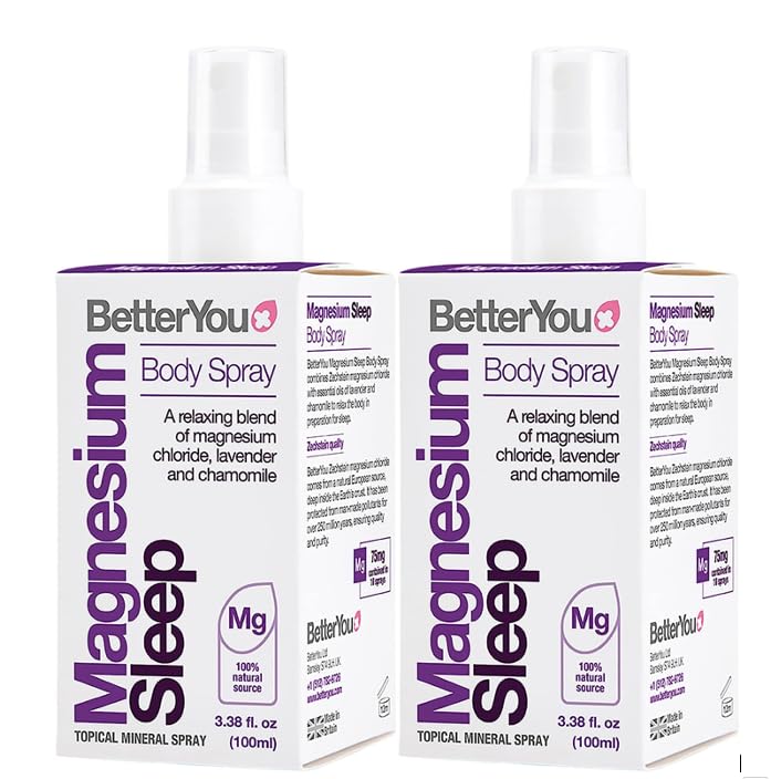 Better You Magnésium Muscle Body Spray Topique Relaxant Magnésium et Huile Essentielle Lavande et Camomille Favorise un Meilleur Sommeil 2 x 100 ml Lot de 2