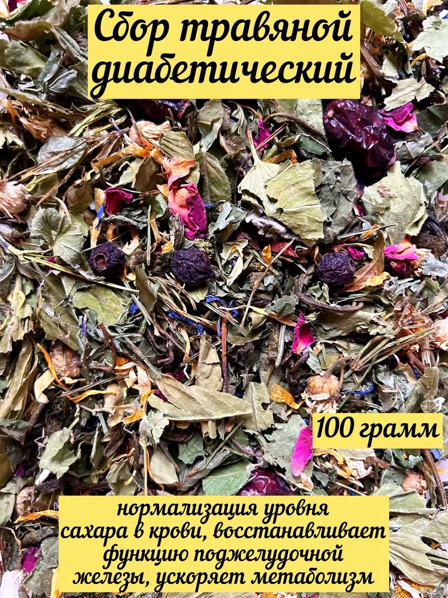 Травяной сбор диабетический - это уникальное сочетание трав и растений, специально подобранных для поддержки здоровья людей, страдающих от диабета. Вес упаковки составляет 100 грамм, что делает его удобным и экономичным в использовании.Состав этого сбора включает следующие травы и растения:1. Манжетка трава: известна своими противовоспалительными и антиоксидантными свойствами, которые помогают улучшить общее состояние организма.2. Листья березы: содержат природные диуретические свойства, которые помогают в борьбе с отечностью и улучшают обмен веществ.3. Василек: известен своими противовоспалительными и успокаивающими свойствами, которые могут помочь снизить воспаление и успокоить нервную систему.4. Календула: обладает противовоспалительными и антимикробными свойствами, которые способствуют заживлению ран и улучшению общего состояния кожи.5. Хвощ полевой: богат кремнием, что способствует укреплению костей, волос и ногтей.6. Лепестки розы крымской: содержат антиоксиданты, которые помогают бороться с свободными радикалами и улучшают общее состояние организма.7. Мята: известна своими успокаивающими и противовоспалительными свойствами, которые помогают улучшить пищеварение и снять напряжение.8. Листья ежевики: содержат антиоксиданты и витамины, которые помогают поддерживать здоровье иммунной системы и улучшают обмен веществ.9. Ромашка лекарственная: обладает успокаивающими и противовоспалительными свойствами, которые помогают снять напряжение и улучшить общее состояние организма.10. Листья лещины: содержат витамины и минералы, которые помогают поддерживать здоровье сердца и сосудов.11. Шиповник: богат витамином С, который помогает укрепить иммунную систему и поддерживать здоровье кожи.12. Зеленый чай: содержит антиоксиданты, которые помогают бороться с свободными радикалами и улучшают общее состояние организма.13. Боярышник: известен своими успокаивающими свойствами и способностью поддерживать здоровье сердца.14. Изюм: богат антиоксидантами и витаминами, которые помогают укрепить иммунную систему и улучшить обмен веществ.15. Листья черники: содержат антиоксиданты, которые помогают бороться со свободными радикалами и улучшают общее состояние организма.Травяной сбор диабетический - это натуральный продукт, который поможет вам поддерживать здоровье и улучшать общее состояние организма.2 ст. ложки сбора залить 300-350 мл. горячей воды, дать настояться 15-30 минут. Принимать по 100 мл. три раза в день за 30 мин. до приема пищи. Срок годности 24 месяца. Перед применением проконсультироваться с лечащим врачом или фитотерапевтом. Противопоказания: беременность, период лактации, индивидуальная непереносимость компонентов, дети. Не является лекарственным средством.