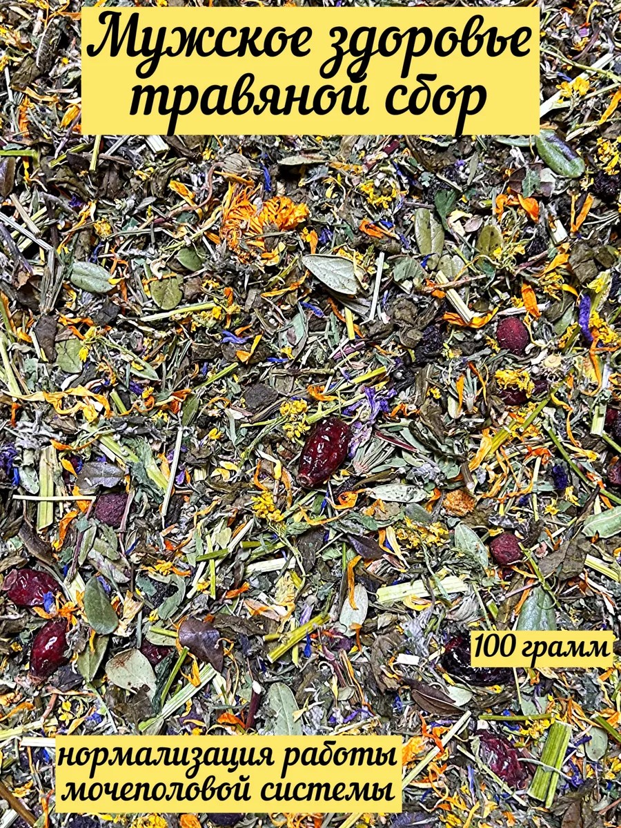 Травяной сбор "Мужское здоровье" предназначен для нормализации работы мочеполовой системы и обладает рядом полезных свойств благодаря каждому из его ингредиентов.В состав данного сбора входят следующие травы и растения:Василек - обладает противовоспалительными свойствами и способствует улучшению функционирования мочеполовой системы.Хвощ полевой - содержит много кремния, который положительно влияет на состояние простаты и мочевого пузыря. Шиповник - богат витамином С, который укрепляет иммунную систему и поддерживает здоровье органов мочеполовой системы.Пижма - обладает антисептическими свойствами и помогает справиться с воспалениями в мочеполовой системе. Лист брусники - содержит вещества, которые помогают предотвратить развитие инфекций мочевых путей.Календула - обладает противовоспалительными и антисептическими свойствами, способствует укреплению иммунной системы и здоровью мочеполовой системы.Вишня сушеная - содержит антиоксиданты, которые помогают улучшить кровообращение и общее здоровье органов мочеполовой системы.Мята - обладает противовоспалительными свойствами и помогает справиться с раздражением мочевого пузыря.Цветки мальвы - содержат слизи, которые обволакивают слизистую оболочку мочевого пузыря и помогают справиться с воспалительными процессами. Сурепку называют мужской травой за способность предотвращать и излечивать заболевания предстательной железы, улучшать качество спермы, помогать при нарушениях потенции, бороться с мужским бесплодием. Для устранения эректильной дисфункции траву используют в виде отваров для приема внутрь. В мужском организме крапива повышает уровень тестостерона, помогает увеличить потенцию и нормализовать состояние желудочно-кишечного тракта. Чабрец снижает отечность мочевыводящих каналов при простатите, тем самым улучшая отток мочи из организма. Может благосклонно влиять на динамику лечения при эректильной дисфункции. В процессе потребления вырабатывается дополнительное количество тестостерона, что способствует укреплению мужской силы. Полынь способствует повышению выносливости и мужской силы. Используется как лекарственное средство при лечении заболеваний мочевыводящих путей, имеющих инфекционную природу. Мяту не рассматривают как природный афродизиак, повышающий мужскую силу. Однако растение может быть полезным при лечении эректильной дисфункции. Гемодинамическое действие мятной фитотерапии нормализует кровообращение, обеспечивает полноценное снабжение кровью половых органов.