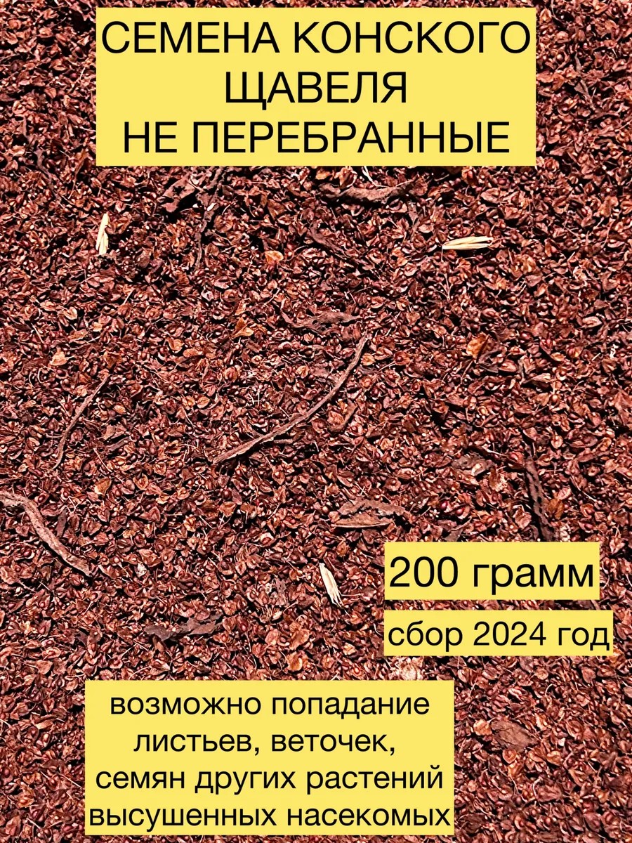 Horse sorrel seeds are sorted to remove only the largest debris. Small debris, such as seeds of other plants, dried insects, leaves, and horse sorrel twigs, are not removed. The seeds are NOT treated with chemicals and, after sorting, are ready for consumption, infusions and decoctions, and planting in garden plots. Horse sorrel seeds are a natural product with many beneficial properties. The package weighs 200 grams. Horse sorrel is a valuable source of vitamins, minerals, and antioxidants. It contains vitamin C, which helps strengthen the immune system and protect the body from free radicals. Horse sorrel seeds also contain B vitamins, which help normalize the nervous system and metabolism. One of the main beneficial properties of horse sorrel is its ability to improve digestive function. This product helps improve appetite, accelerate metabolism, and stimulate the gastrointestinal tract. Horse sorrel seeds are also known for their antibacterial properties. They can help fight various infections and inflammatory processes in the body. Furthermore, horse sorrel may help lower blood cholesterol levels, which helps prevent the development of cardiovascular disease. It may also help regulate blood sugar levels and maintain a healthy weight. Horse sorrel seeds can be used in cooking, adding them to salads, soups, and other dishes. They can also be used to prepare medicinal decoctions and infusions. It is important to note that before using horse sorrel seeds for medicinal purposes, it is recommended to consult a doctor, especially if you have any medical conditions or are taking medications. This is not a medicine. Shelf life is 24 months. Seeds were collected in September 2024.