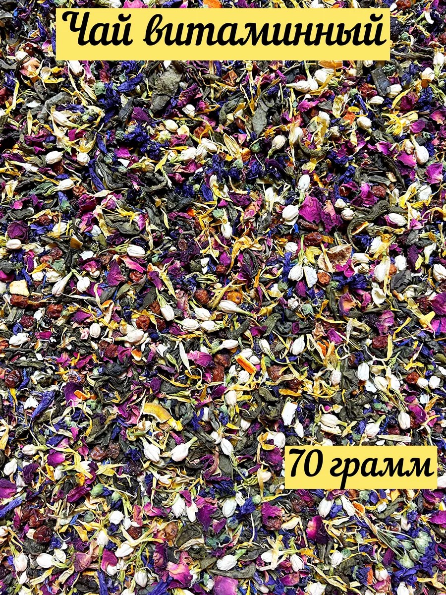 Our vitamin tea is a unique combination of natural ingredients, each with its own beneficial properties: 1. Mallow flowers - have an enveloping and anti-inflammatory effect, help improve the gastrointestinal tract. 2. Red rowan - a source of vitamins and minerals, strengthens the immune system, normalizes the cardiovascular system. 3. Rose petals - have antioxidant properties, help improve skin condition. 4. Calendula - has anti-inflammatory and antiseptic properties, promotes wound healing. 5. Jasmine - helps reduce stress, improves mood. 6. Lemon and tangerine peel - rich in vitamin C, strengthen the immune system, help improve the overall condition of the body. 7. Hawthorn - improves the cardiovascular system, normalizes blood pressure. 8. Chinese green tea has antioxidant properties, promotes overall well-being, and improves brain function. Our vitamin tea is not only delicious but also a healthy drink that will help maintain your health and well-being. It is not a medicine. Contraindications: individual intolerance to any of the ingredients. Consult your doctor or herbalist before use. You can find our tea by searching for "flower tea," "vitamin tea," "sedative tea," "delicious tea," "flower tea," "green tea," or "Chinese green tea."