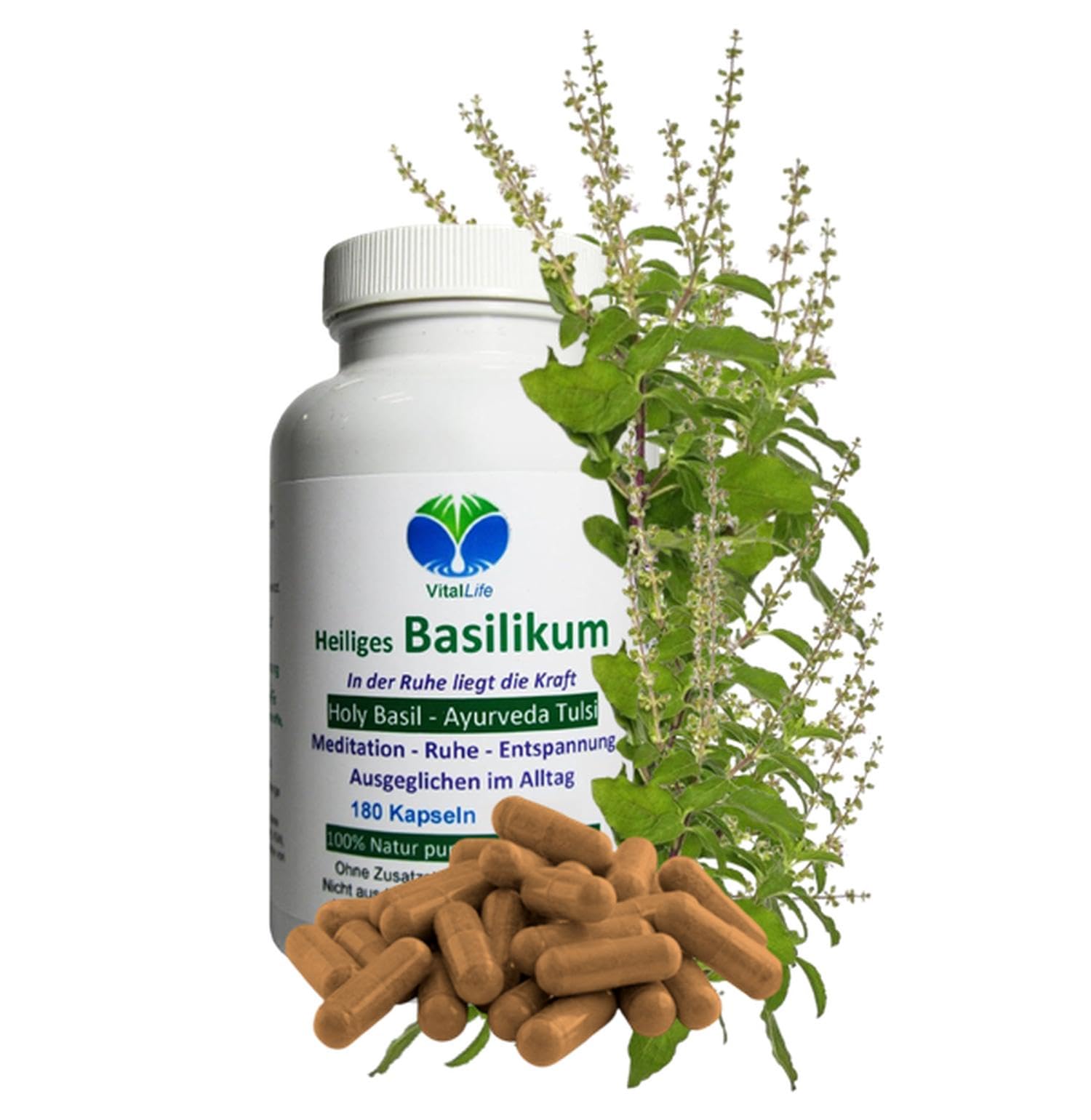 Tulsi holy Indian basil - balm for the soul - pure nature.Without additives. Indian basil, also called Indian asparagus and holy basil (Holy Basil, Red Basil, Healing Königskraut), stands for harmony and compensation of all chakras and doshas in the Ayurveda and for a healthy life.Indian basil is valued for the support of general well -being, to calm and relax and as a balm for the soul. With this product you opt for pure nature from German production - premium quality - without coating. Vegetarian vegan capsules.Since vegetable cellulose is often only dissolved in the lower digestive tract, which is undesirable for most fabrics, we have so far not decided to switch to vegan capsule envelopes made of hemicellulosis.Our capsules are made of beef gelatin.Made and filled in Germany. Ingredients ingredients Tulsi Holy Indian Basil Holy Basil Ayurveda Königskraut.Grind the microfein cold, best raw food quality (high bioavailability) - pure nature.Without additives fillers. Instructions Recommendation for consumption: 2 x 2 capsules over the day or take 2 x 2 capsules half to one hour before bed or if necessary with plenty of liquid (1 glass of water). Warnings Dietary supplements are not a substitute for a balanced and varied diet.The recommended daily dose should not be exceeded.Store cool and dry after opening.Keep out of reach of children. Moreconsumption recommendation and vegan capsules (see pictures links and below).Pure 100 !Grind the microfein cold.No extract.Not from concentrate.Not chemically highly dosed.Lactose gluten-free.Made and filled in Germany.Indian basil (Tulsibasilikum, Holy Basil, Healing Royal Smut), in raw food quality (high bioavailability).On additives.On Fulling.Indian basil is equated in Ayurvedic folk medicine with inner peace, relaxation, meditation and harmony of the chakras and doshas and valued as a balm for the soul.Alternatively, Tulsibasilikum is prescribed to support healthy normal digestion, in the event of stress, in menopause and for the preservation of a healthy normal cholesterol.TULSI Heiliges INDISCHES BASILIKUM - Balsam für die Seele - Natur pur. Ohne Zusatzstoffe. Indisches Basilikum, auch indischer Spargel und heiliges Basilikum (Holy Basil, Red Basil, heilendes Königskraut) genannt, steht im Ayurveda für Harmonie und Ausgleich aller Chakras und Doshas und für ein gesundes langes Leben. Indisches Basilikum wird zur Unterstützung des allgemeinen Wohlbefindens, zur Beruhigung und Entspannung und als Balsam für die Seele geschätzt. Mit diesem Produkt entscheiden Sie sich für NATUR pur aus deutscher Herstellung - Premium Qualität - OHNE ZUSAZSTOFFE. VEGETARISCHE VEGANE KAPSELN. Da sich pflanzliche Zellulose oft erst im unteren Verdauungstrakt auflöst, was bei den meisten Stoffen ungewünscht ist, haben wir uns bislang nicht zu einer pauschalen Umstellung auf vegane Kapselhüllen aus Hemicellulose entschieden. Unsere Kapseln sind aus Rindergelatine. Hergestellt und abgefüllt in Deutschland. INHALTSSTOFFE ZUTATEN TULSI Heiliges INDISCHES BASILIKUM Holy BASIL Ayurveda Königskraut. Mikrofein kalt vermahlen, beste Rohkostqualität (hohe Bioverfügbarkeit) - NATUR PUR. OHNE ZUSATZSTOFFE FÜLLSTOFFE. GEBRAUCHSANWEISUNG VERZEHREMPFEHLUNG: 2 x 2 Kapseln über den Tag verteilt ODER 2 x 2 Kapseln eine halbe bis eine Stunde vor dem Schlafengehen ODER bei Bedarf mit reichlich Flüssigkeit (1 Glas Wasser) einnehmen. WARNHINWEISE Nahrungsergänzungsmittel sind kein Ersatz für eine ausgewogene und abwechslungsreiche Ernährung. Die angegebene, empfohlene tägliche Verzehrmenge darf nicht überschritten werden. Nach dem öffnen kühl und trocken lagern. Außerhalb der Reichweite von Kindern aufbewahren. MehrVERZEHREMPFEHLUNG und VEGANE KAPSELN (siehe Bilder links und unten). 100 NATUR PUR! Mikrofein kalt vermahlen. Kein Extrakt. Nicht aus Konzentrat. NICHT chemisch hochdosiert. Lactose- glutenfrei. Hergestellt und abgefüllt in Deutschland. Indisches BASILIKUM (Tulsibasilikum, Holy Basil, Heilendes Königskraut), in Rohkostqualität (hohe Bioverfügbarkeit). OHNE ZUSATZSTOFFE. OHNE FÜLLSTOFFE. INDISCHES Basilikum wird in der ayurvedischen Volksmedizin mit innerer Ruhe, Entspannung, Meditation und Harmonie der Chakras und Doshas gleichgesetzt und als Balsam für die Seele geschätzt. Tulsibasilikum wird alternativ zur Unterstützung einer gesunden normalen Verdauung, bei Stress, in den Wechseljahren und für den Erhalt eines gesunden normalen Cholesterinspiegels verschrieben.TULSIBASILIKUM 180 Kapseln Heiliges TULSI-BASILIKUM Holy-BASIL Ayurveda "indisches Königskraut" - Meditation Ruhe Entspannung - Ausgeglichen im Alltag. NATUR pur. OHNE ZUSATZSTOFFE. 26700-180