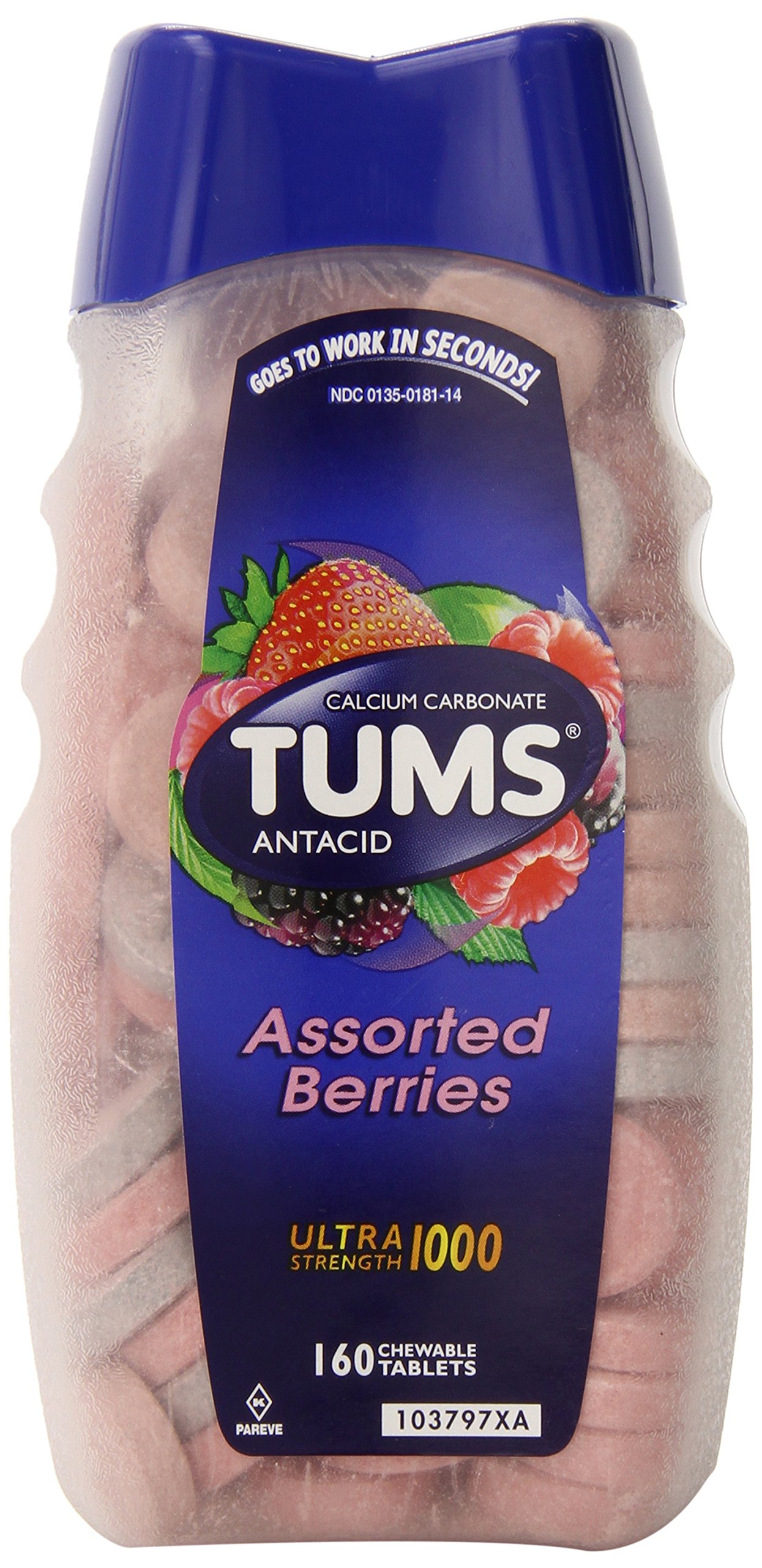 Tums Ultra Strength 1000 ,Antacid Chewable Tablets Assorted Berries 160 Count (Pack of 24)