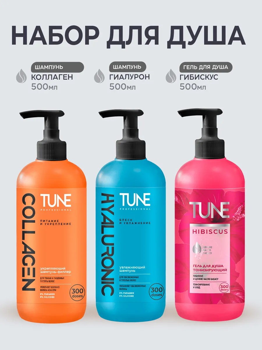 TUNE Набор для волос и тела, Гель для душа+Шампунь+Шампунь