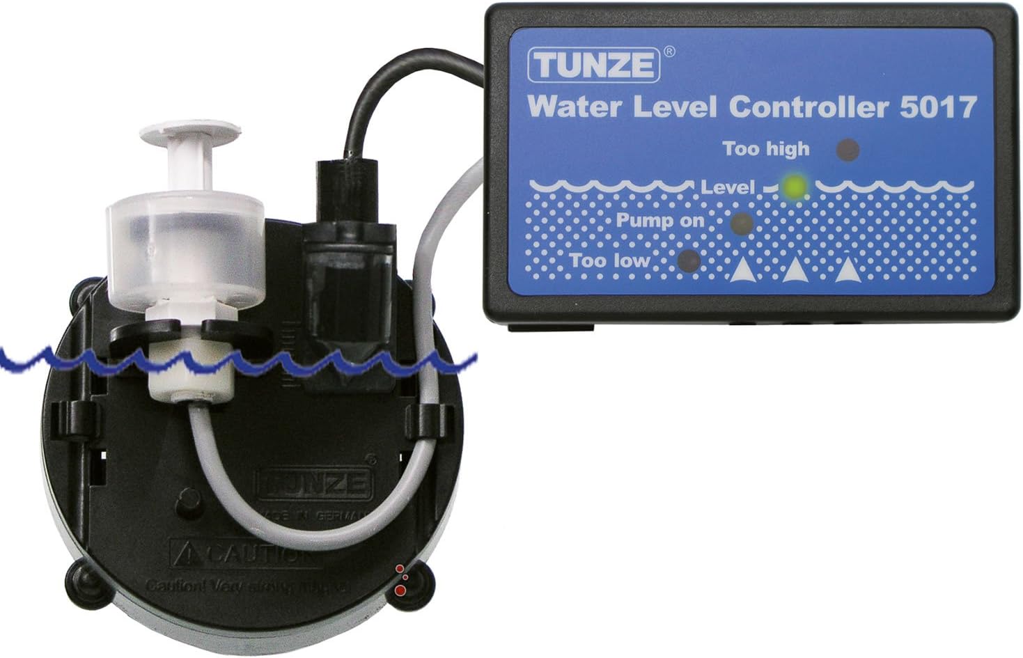 Tunze - Immerse yourself in the future of aquaristics!We have set standards in quality environmental friendliness since 1960.Innovative water technology from family tradition in harmony with nature!.Evaporation compensation - the osmolator ensures stable evaporation compensation.This is particularly important because aquarium animals react sensitively to constantly changing salt concentrations.Intelligent control - the water level controller has the 5017 control unit, which shows all functions optically acoustically warns of disorders.If the dosing pump runs for more than 10 minutes, it is automatically switched off.Easy assembly - the level switch has a magnet holder can thus be flexibly positioned at any desired point of the aquarium glass pane (up to 15 mm).Precise water level control - The tunze water sensor offers exact monitoring reliable refilling of the water level in medium -sized aquariums with up to 1000 liters.