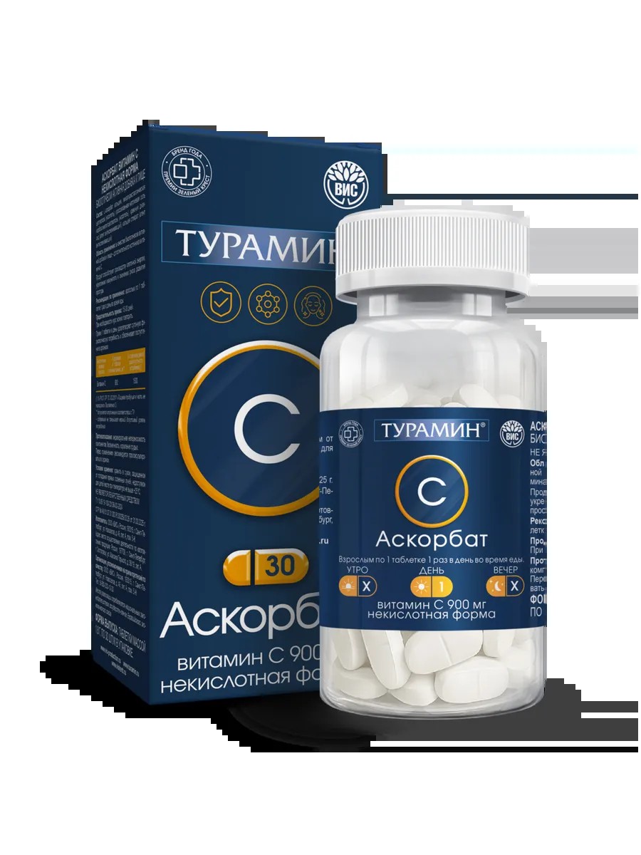 Турамин Аскорбат Витамин С некислотная форма таблетки массой 1,8 г 30 шт