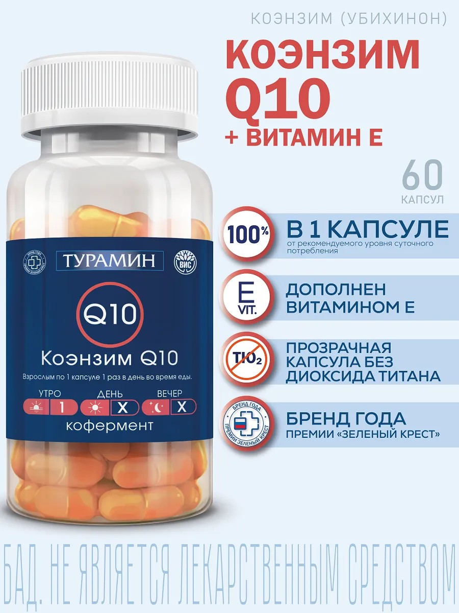Турамин Коэнзим Q10 – это комплекс коэнзима Q10 с витамином Е для усиления антиоксидантной активности и натуральным оливковым маслом для высокой степени усвоения.