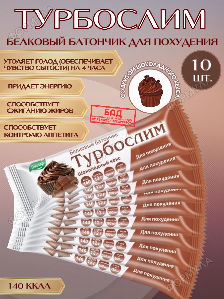| Комплектация | турбослим батончик для похудения со вкусом шоколадный кекс 50,0 n1; 10 шт |