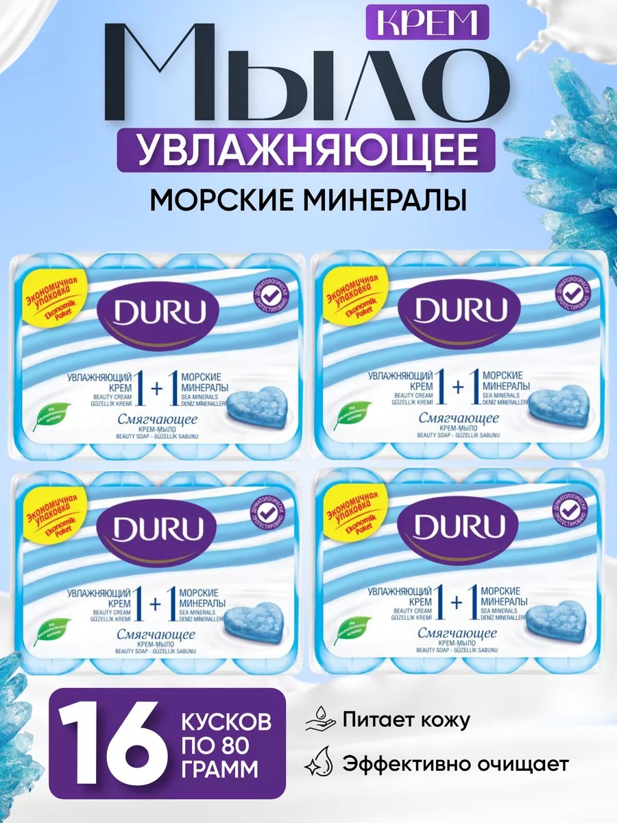 Мыло DURU 1+1 Морские менералы, календула, розовый грейпфрут и зеленый чай предлагает комбинацию этих ингредиентов для бережного очищения и ухода за кожей. Оно может помочь сделать вашу кожу более свежей, увлажненной и здоровой, а также оставить на ней приятный аромат.