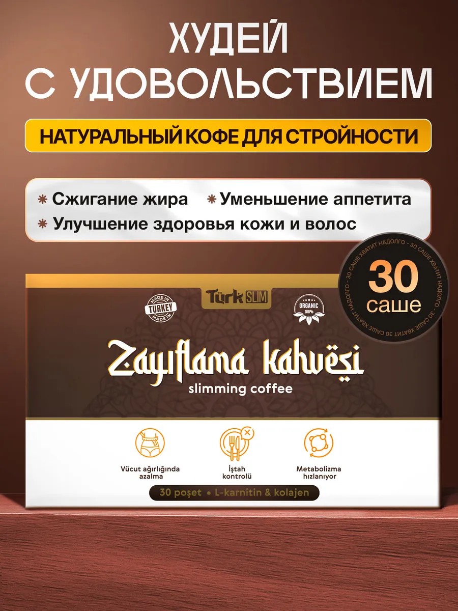 Турецкий кофе — это натуральный напиток, созданный для похудения без вреда для здоровья. С L - карнитином, коллагеном и гарцинией камбоджийской, он помогает убрать живот, снижению массы тела и очищению организма, вывести все шлаки и токсины. Этот вкусный напиток жиросжигатель не только способствует снижению веса, но и заботится о вашей коже.
