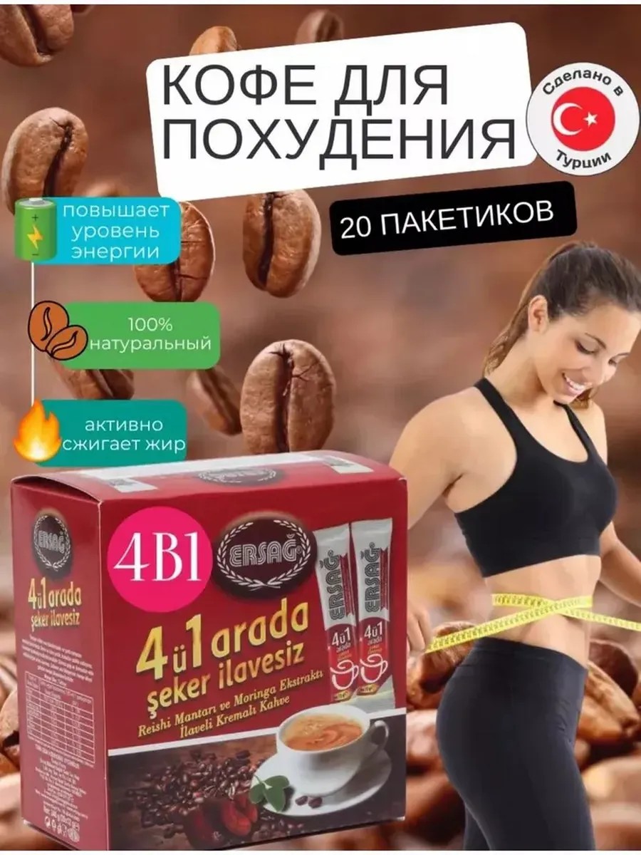 Turkish coffee Ersag 4 in 1 for weight loss with its mild flavor is more than just a drink; it's your personal assistant in the fight for your ideal figure. This unique product combines four key actions: accelerating metabolism, reducing appetite, stimulating fat burning, and detoxifying the body. With its mild yet rich flavor, it will be an excellent addition to your daily diet. Made with high-quality ingredients, Ersag will not only help you achieve your desired figure but also give you extra energy throughout the day and improve your overall well-being.