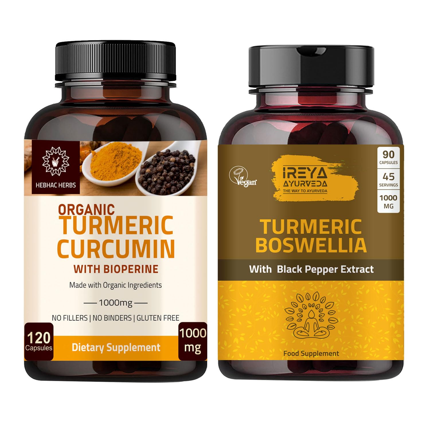 Turmeric Curcumin with Black Pepper Capsules - 1000mg (120 Capsules) Turmeric Curcumin Capsules with BioPerine Black Pepper Extract, Made with Organic Turmeric Curcumin and Black Pepper Extract. Boswellia Extract Capsules (90 Capsules) 1000 mg - Boswellia Serrata with Organic Turmeric Curcumin Bioperine 45 Days Supply.