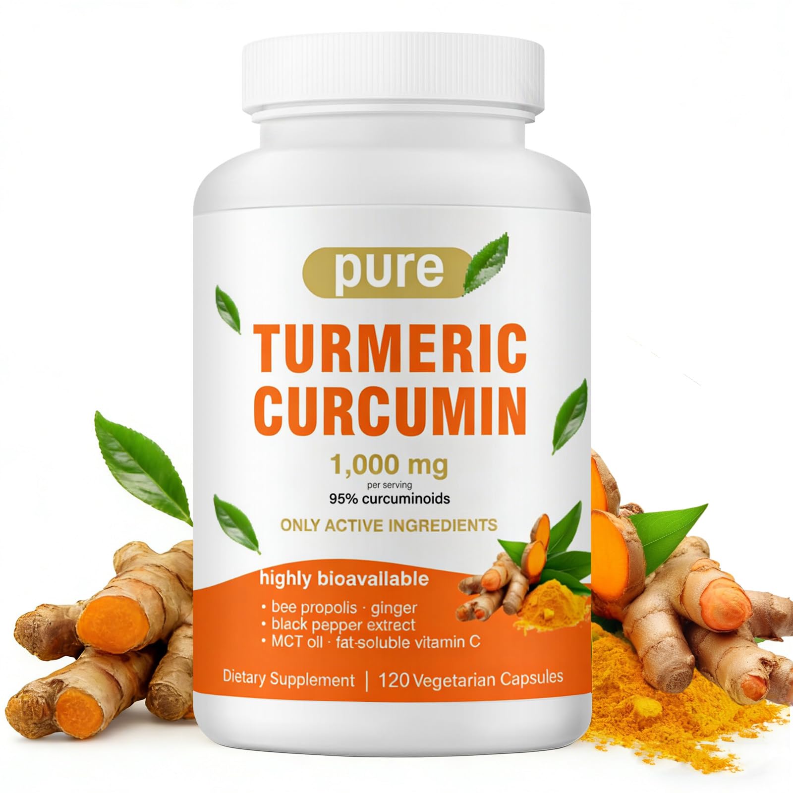 Turmeric Curcumin Supplement 1000mg with Black Pepper Extract High Absorption Turmeric Supplement with 95% Curcuminoids for Body Support Gluten Free 120 Capsules with Curcuma Ginger MCT Oil