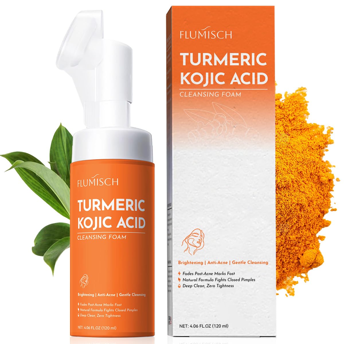 Turmeric Kojic Acid Facial Cleanser Brightening Foaming Face Wash with Soft Massage Heads Kojic Acid Cleanser Exfoliating Turmeric Cleansing for Dark Spots 4.06fl.oz 4.06 Fl Oz (Pack of 1)