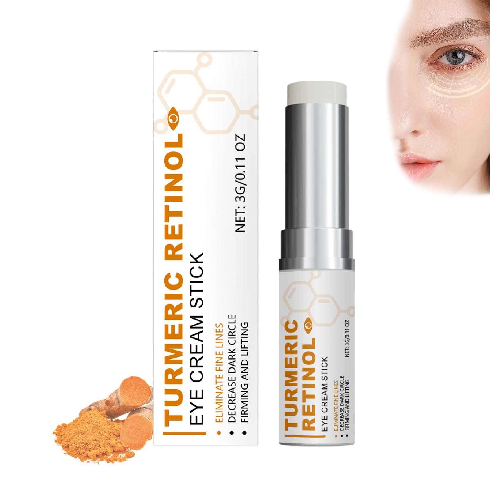 : Turmeric Eye Balm Stick, Moisturizing Eye Stick for Puffiness and Dark Circles, Reduce Fine Lines, Eye Bags, Eye Cream Stick for All Skin Types, Brightening Eye Stick. Specification: Name: Turmeric Retinol Eye Cream Stick Net Content: 3g 0.11oz Product Weight: 14g Shelf Life: 3 Years Package Included: 1 2 4 PCS Turmeric Retinol Eye Cream Stick Note: 1. Please allow slight size errors due to manual measurement, thanks. 2. Monitors are calibrated differently, the product color displayed in the photo may be slightly different from the actual product. Please refer to the actual product. 3. If you have any questions, please feel free to contact us, we will provide you with the most satisfactory solution within 24 hours. SAFETY WARNING Store in a cool, dry place away from light. Please keep this product out of reach of children.How to use: Clean the skin around the eyes, keep it dry, apply the anti-aging eye cream evenly to the skin around the eyes and massage gently until absorbed, do not pull the skin too hard. Long-term use: Turmeric and retinol eye bag stick is suitable for long-term use combined with sleep to effectively improve eye bags, puffiness and dark circles. Gentle formula: Our natural eye cream stick is light and gentle, non-irritating and non-greasy, leaving your eyes relaxed. Moisturizes eye skin: This hydrating eye serum can moisturize the eye area and lock in moisture, moisturizing and preventing dry skin all day long. Firming and lifting: Retinol eye cream for puffiness reduces fine lines, helps improve the smoothness of the skin around the eyes and restores youthful skin. : Bâton de baume pour les yeux au curcuma, bâton pour les yeux hydratant pour les poches et les cernes, réduit les ridules, les poches sous les yeux, bâton de crème pour les yeux pour tous les types de peau, bâton éclaircissant pour les yeux. Spécification : Nom : bâton de crème pour les yeux au curcuma et au rétinol Contenu net : 3 g 0,11 oz Poids du produit : 14 g Durée de conservation : 3 ans Emballage inclus : 1 2 4 PCS bâton de crème pour les yeux au curcuma et au rétinol Remarque : 1. Veuillez autoriser de légères erreurs de taille en raison de la mesure manuelle, merci. 2. Les moniteurs sont calibrés différemment, la couleur du produit affichée sur la photo peut être légèrement différente du produit réel. Veuillez vous référer au produit réel. 3. Si vous avez des questions, n'hésitez pas à nous contacter, nous vous fournirons la solution la plus satisfaisante dans les 24 heures. AVERTISSEMENT DE SÛRETÉ A conserver dans un endroit frais et sec, à l'abri de la lumière. Veuillez conserver ce produit hors de portée des enfants.Mode d'emploi : Nettoyez la peau autour des yeux, gardez-la sèche, appliquez la crème anti-âge pour les yeux uniformément sur la peau autour des yeux et massez doucement jusqu'à absorption, ne tirez pas trop fort sur la peau. Utilisation à long terme : le bâton pour les poches sous les yeux au curcuma et au rétinol convient à une utilisation à long terme associée à un sommeil efficace pour améliorer les poches sous les yeux, les gonflements et les cernes. Formule douce : notre stick crème contour des yeux naturel est léger et doux, non irritant et non gras, laissant vos yeux détendus. Hydrate la peau des yeux : ce sérum hydratant pour les yeux peut hydrater le contour des yeux et retenir l'humidité, hydratant et prévenant la peau sèche tout au long de la journée. Raffermissante et liftante : la crème contour des yeux au rétinol pour les poches réduit les ridules, aide à améliorer la douceur de la peau autour des yeux et restaure la jeunesse de la peau.