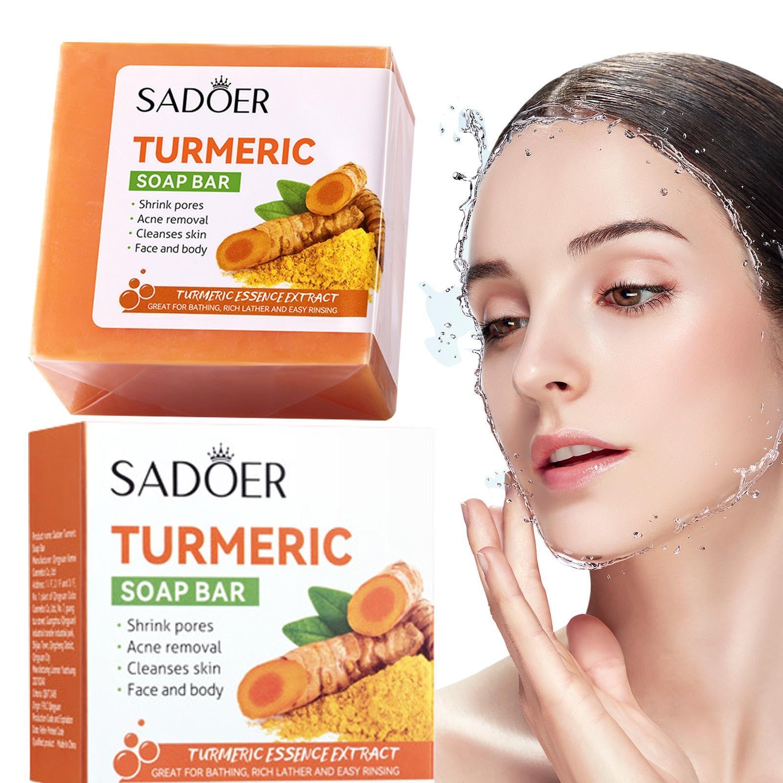 ? Turmeric Soap Bar combined with olive oil, ginger extract, and glycerin is e_ssential as it acts as humectant and helps the skin retain moisture Turmeric Handmade Soap is gentle and suitable for all skin types. Can effectively clean the skin and effectively resist the growth of comedo, suitable for men, women Properties: Product size about: 5.5*5.5*2.5cm/2.16*2.16*0.98 in Approximate weight: 100g Product List: Soap*1 piece Kind tips: 1. Due to the color temperature of the display, camera, ambient light and photography skills, etc., there may be slight color difference in the pictures of some products, and the color is subject to the actual product! 2. Due to different manual measurements, please allow slight size differences. 3. The effect of use varies from person to person, please stop using it if you feel unwell.?Relieve Dry Skin?Turmeric soap has very good moisturising properties, relieves dry skin and replenishes moisture. ?Natural Botanical Formula?Our Turmeric Soap for face Without Stimulating ingredients,Cruelty-free,v_egan.The turmeric anti face cream for nourished skin. Fade the color, making the skin fairer and radiant. ?High-Quality Formulation?nature soap contains natural ginger e_ssential oil extract, olive oil, glycerin, wormwood in gentle, quality formula.Hyperpigmentation t_reatment,Exfoliates dead skin cells, leaving skin healthy and radiant. ?Multiple Used?Organic turmeric soap can be used on the face, hands, neck, inner thighs and underarms for daily use and is suitable for all skin types. ?Repairing Sun Damage?Turmeric Handmade Soap repairs sunburn, can help hydrate skin, repair fine lines and wrinkles, and fade scars.