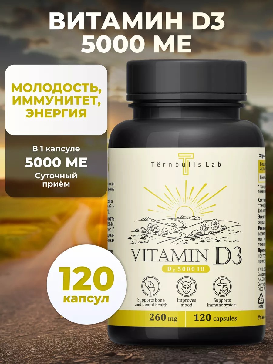 Витамин Д3 5000 МЕ от Ternbulls Lab — это высококачественный источник витамина Д3 в капсулах.