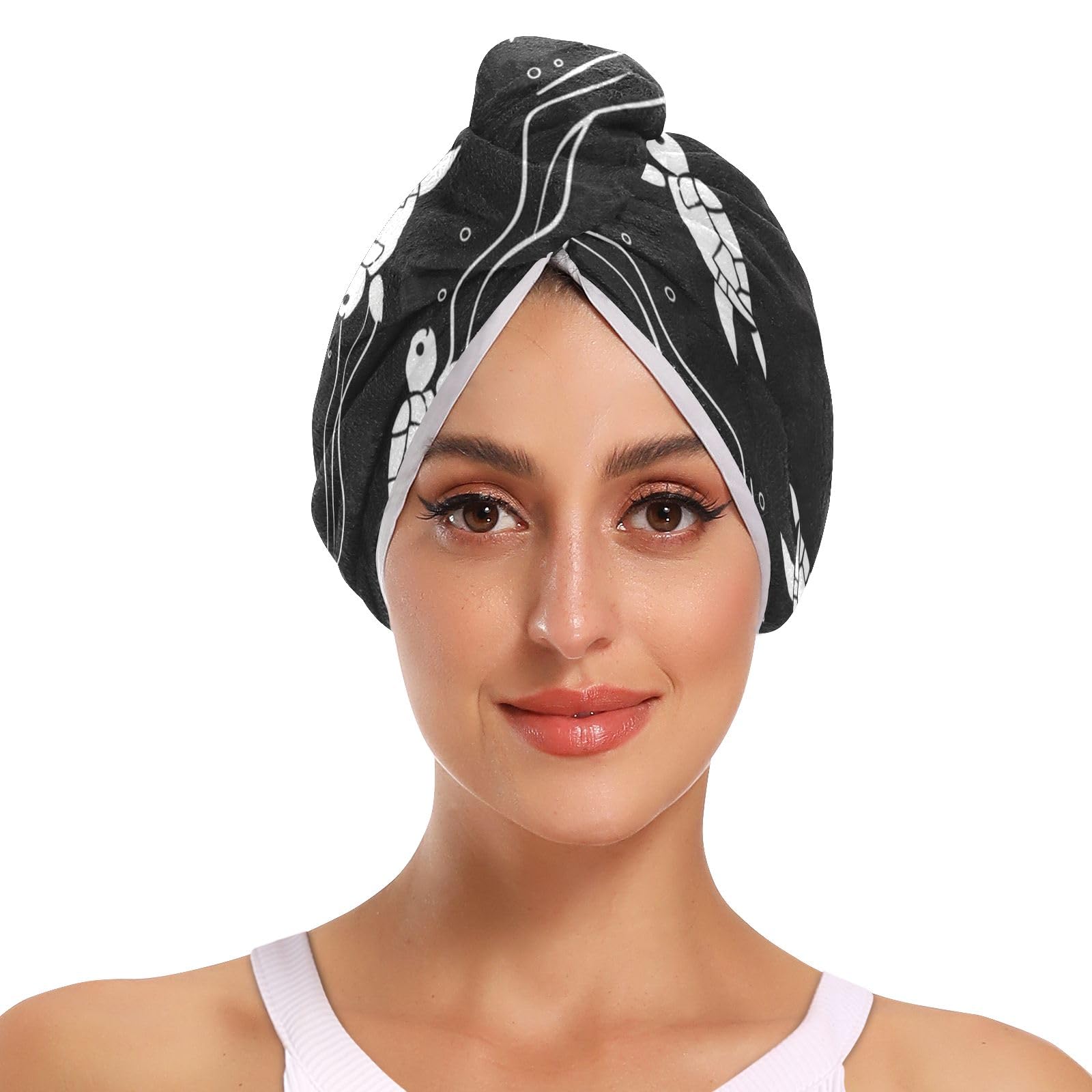 Turtles Black Hair Towel 2 Pack Super Absorbent Hair Drying Towel Quick Dry Hair Turbans Head Towel with Button Twisty Wrap for Women Girls