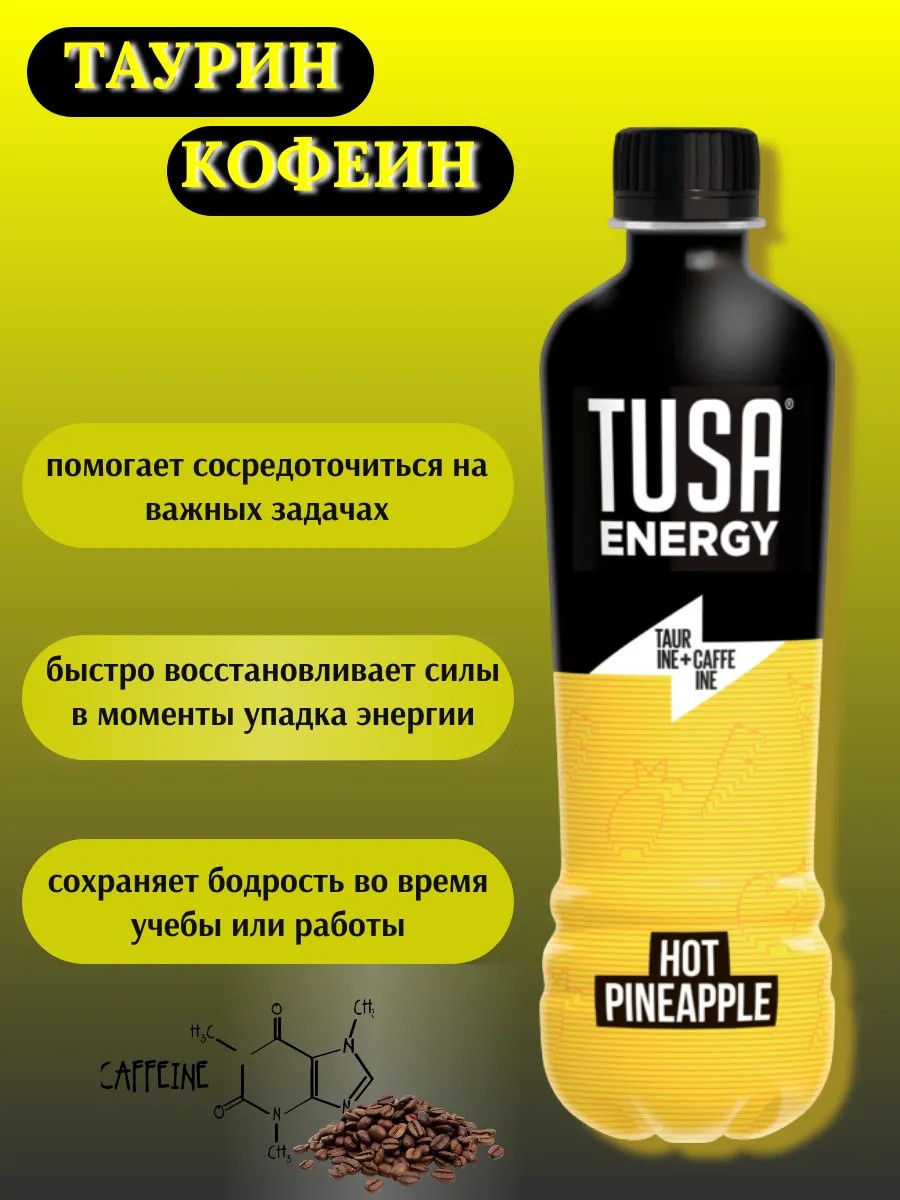 Откройте для себя освежающий и бодрящий энергетик со вкусом сладкого ананаса. TUSA ENERGY Hot Pineapple Edition –это энергетики с высоким содержанием кофеина и таурина, заряжает энергией на всю ночь. Вкус сбалансирован так, чтобы не быть чрезмерно приторным, а наоборот — оставлять освежающее и бодрящее послевкусие. Ананасовые ноты делают газированный напиток приятным и выделяющимся среди других энергетиков. Напиток прекрасно подходит для утреннего пробуждения, тренировок или в качестве быстрого перекуса в дороге.