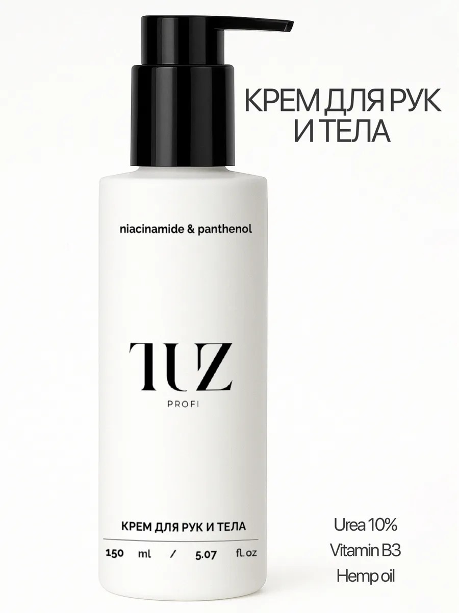 Крем для рук и тела увлажняющий с дозатором TUZ Profi с мочевиной, пантенолом и ниацинамидом обеспечивает интенсивное питание и защиту, особенно для сухой и проблемной кожи. Крем для рук профессиональный, идеально подходит для ухода за кожей. Крем для тела с мочевиной эффективно справляется с проблемами сухости и недостаточного питания, оказывает восстанавливающее действие на сухую кожу, отлично подходит для предотвращения и устранения шелушений, трещин, гусиной кожи, смягчает огрубевшие локти и колени. Крем для рук увлажняющий оказывает омолаживающее действие, обладает антиоксидантными свойствами и ведет борьбу со старением кожи.