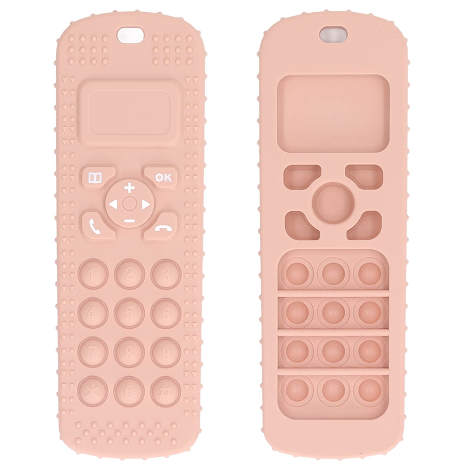 TV Remote Control Shaped Teething Toy Teether Sensory Toys Gum Massager Baby Silicone Teether Soft Teeth Toy for Gum Relief(Peach Pink)