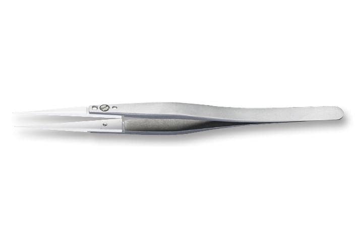 Pinzette, Keramik, austauschbare Spitzen, Pinzette und Ersatzspitzen, 1 Stück, 71 MZ.SA Pinzette, Keramik, austauschbare Spitzen. Gesamtlänge: 45 mm. Material des Pinzetten-Körpers: Edelstahl. Material der Pinzettenspitze: Keramik. SVHC: Keine SVHC (15. Januar 2019). Griffmaterial: Edelstahl.