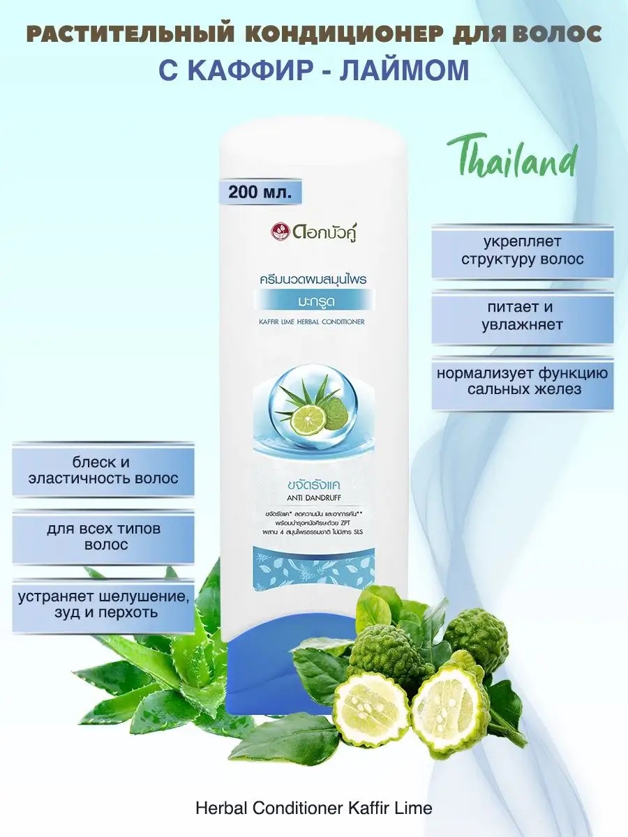Травяной тайский кондиционер бренда Twin Lotus (Твин Лотус) против перхоти Кафрский Лайм нормализует секрецию сальных желез, при регулярном применении устраняет перхоть. Кондиционер особенно эффективен с применением шампуня этой же серии. Для лечения и профилактики рекомендуется применять курсами.