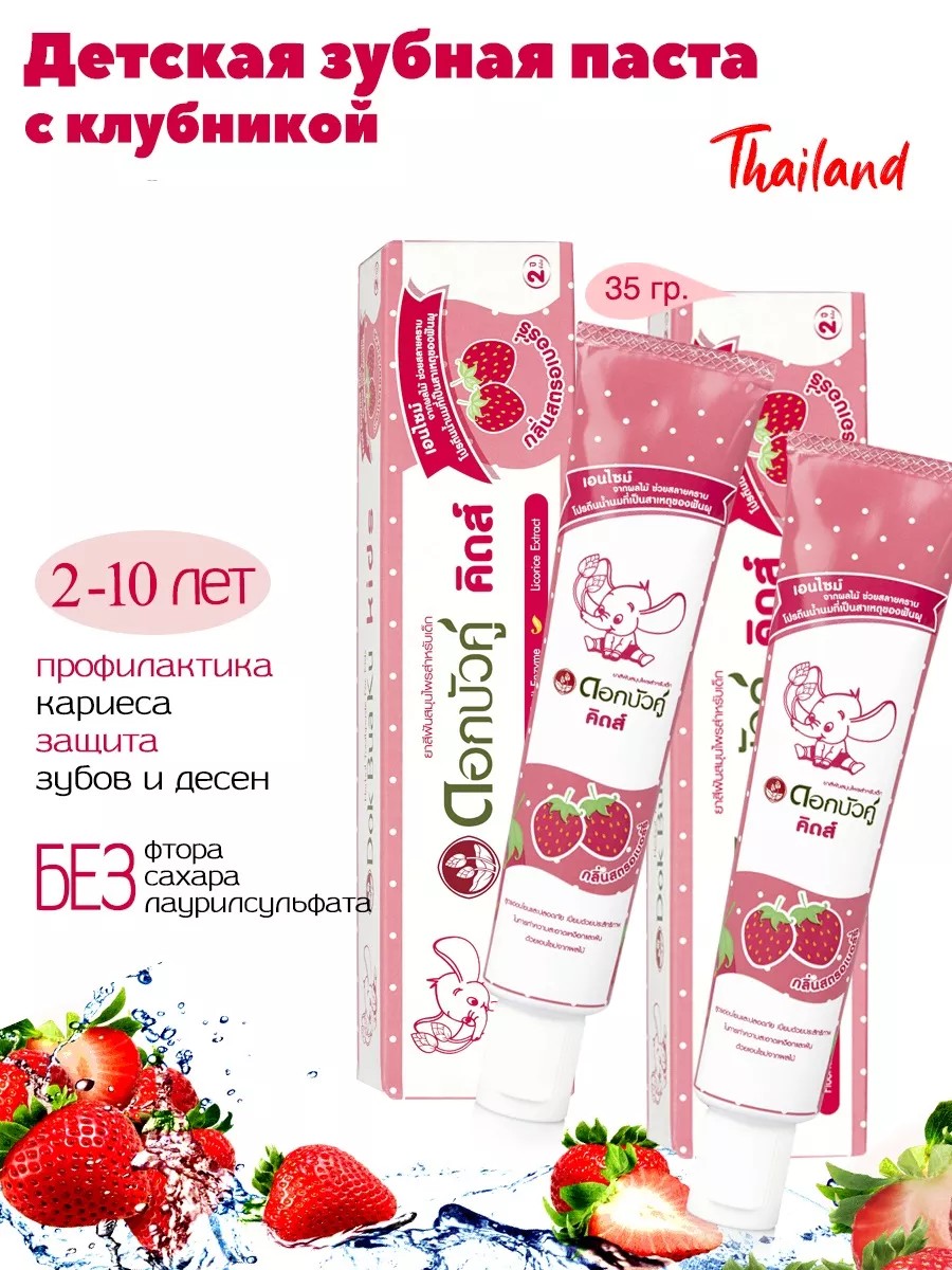 Thai children's toothpaste Strawberry Twin Lotus (Twin Lotus) Dok Bua Ku is designed for daily care of the soft enamel of baby teeth.