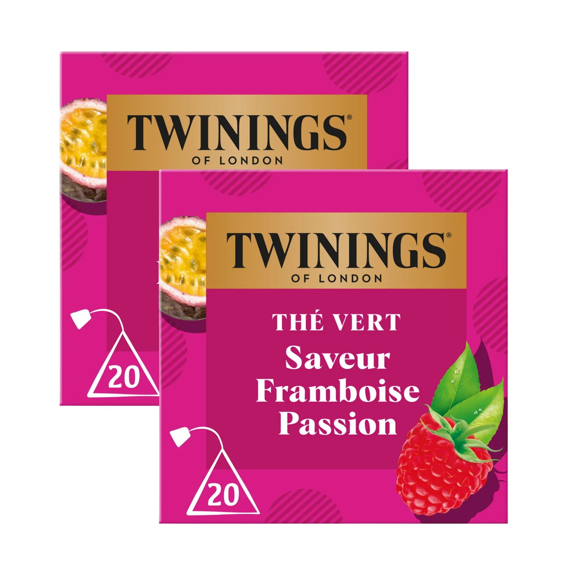 Twinings - Assortiment Découverte Fruité et Exotique - Thé Vert Saveur Framboise, Passion - 40 Sachets - à Déguster Chaud ou Froid Framboise Passion - 40 Sachets