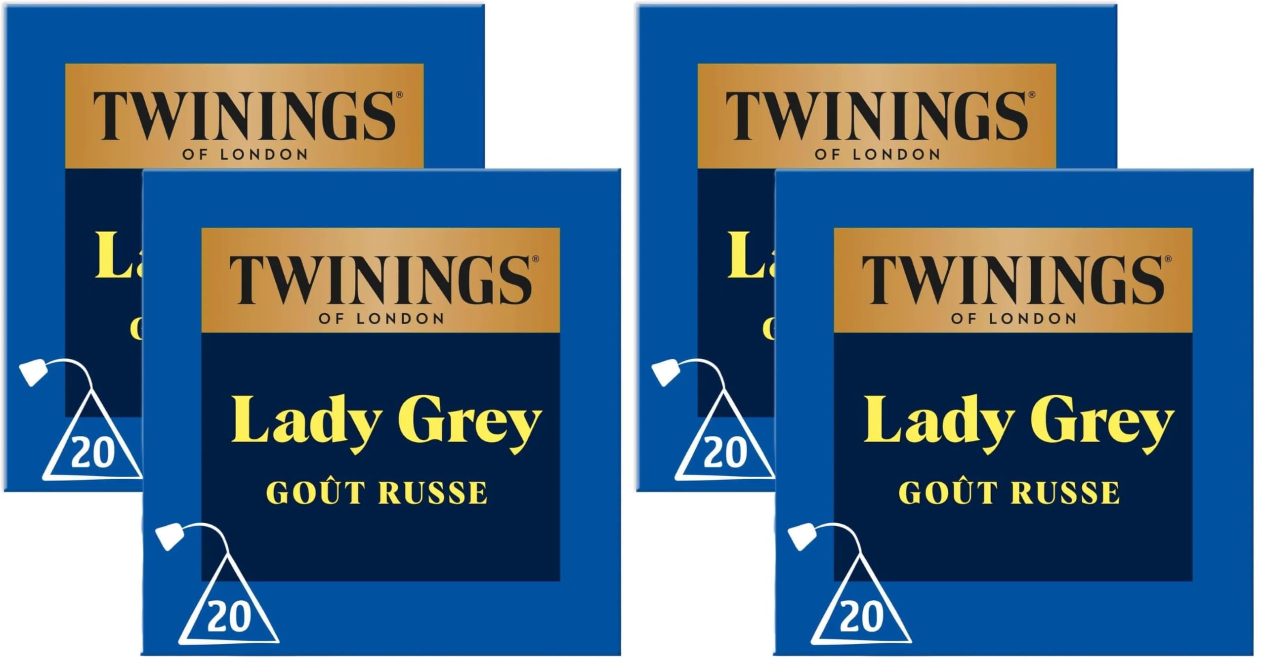 Twinings - Assortiment Découverte Intense et Acidulé - Thé Noir Lady Grey - Aromatisé à la Bergamote et aux Agrumes avec Écorces d'Agrumes - 40 Sachets (Lot de 2)