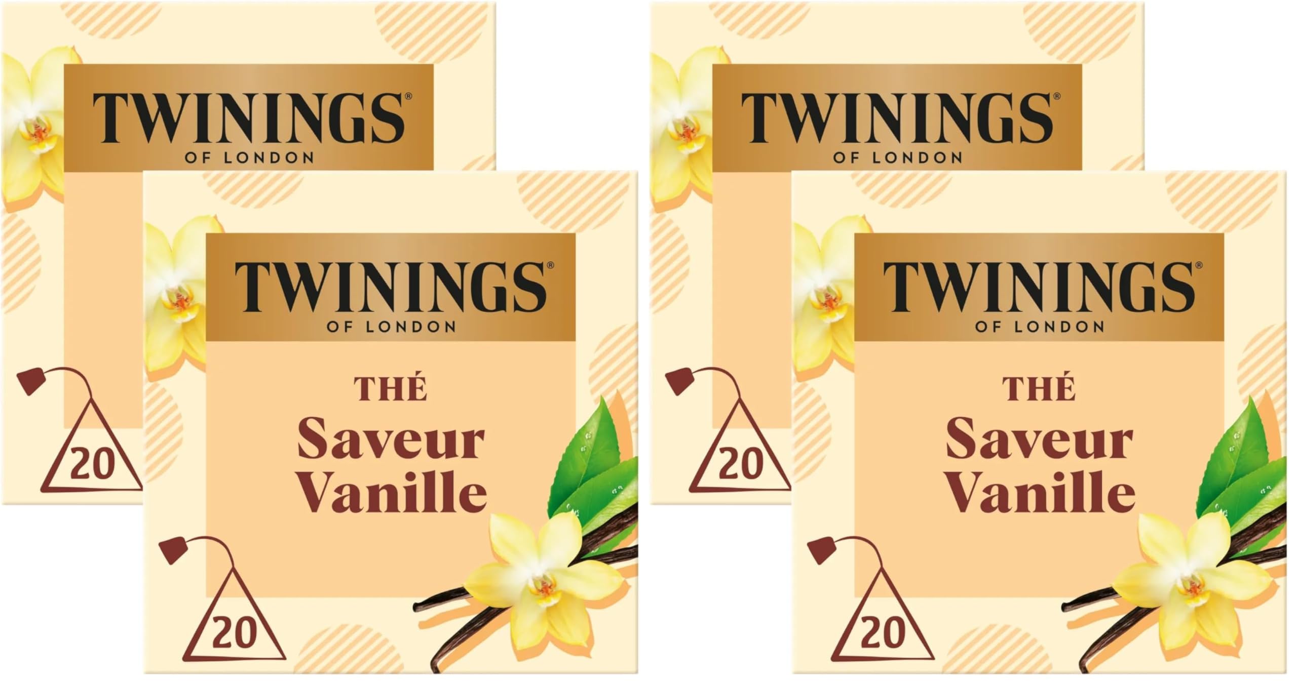 Twinings - Assortiment Découverte Rond et Gourmand - Thé Noir Saveur Vanille - 40 Sachets - à Déguster Chaud ou Froid (Lot de 2)