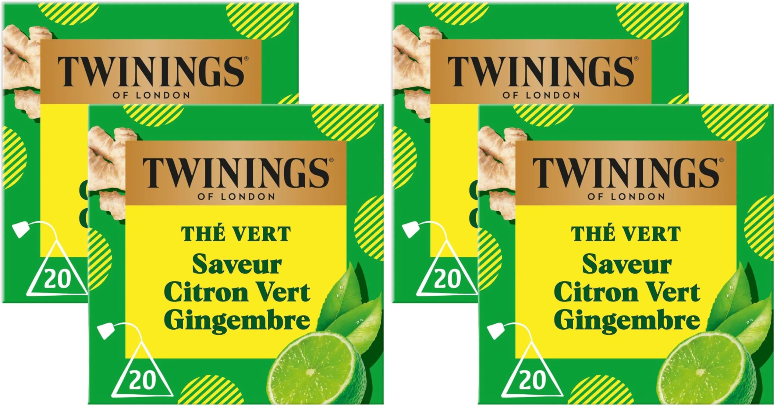 Twinings - Assortiment Découverte Vivifiant et Acidulé - Thé Vert Saveur Citron Vert, Gingembre - 40 Sachets - à Déguster Chaud ou Froid (Lot de 2)