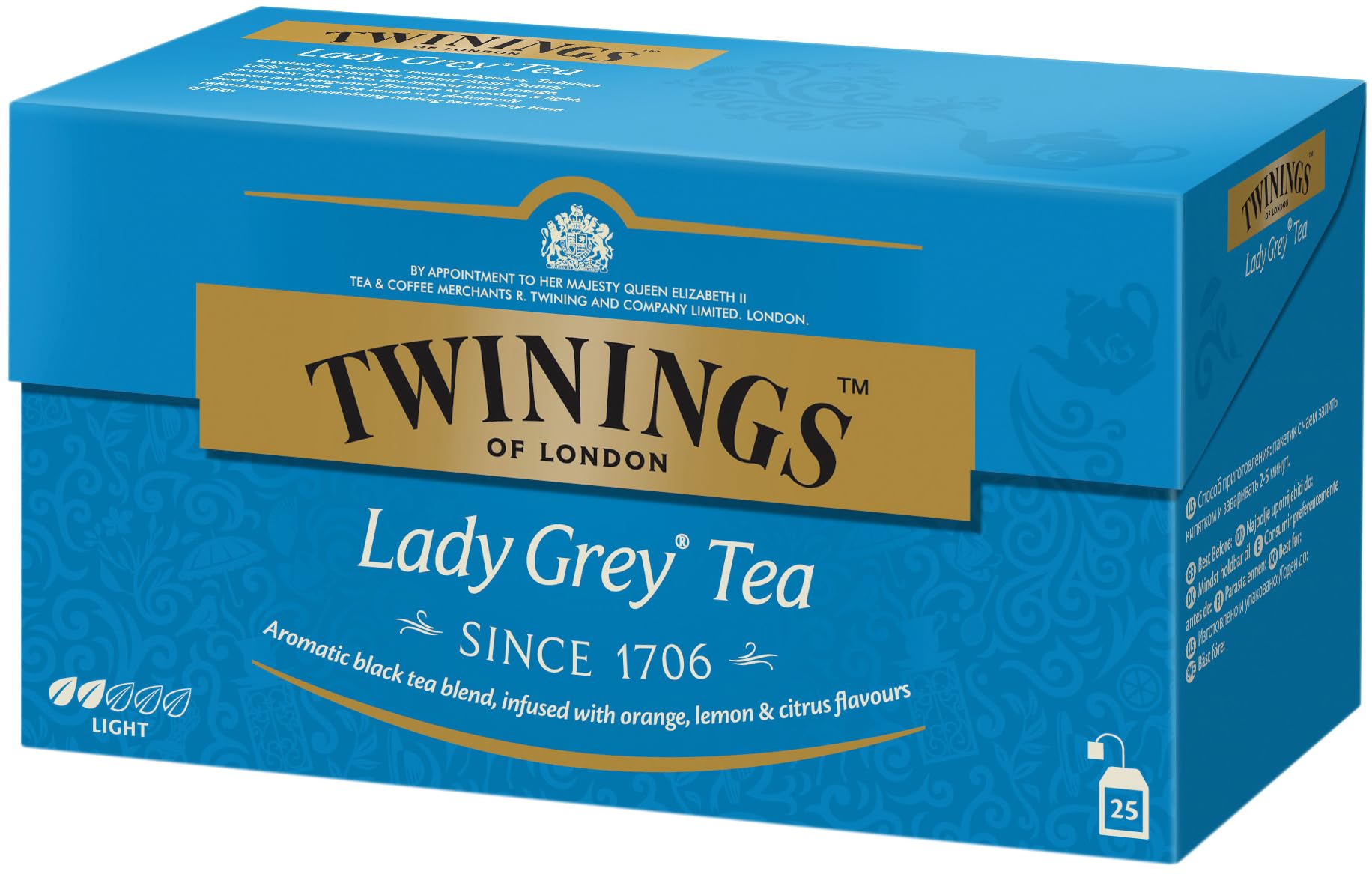 Twinings of London - Lady Grey Tea- (Thé noir, écorces d'orange et de citron et arôme d'agrumes) Idéal à tout moment de la journée - 25 sachets de 2 grammes - Total 50 grammes