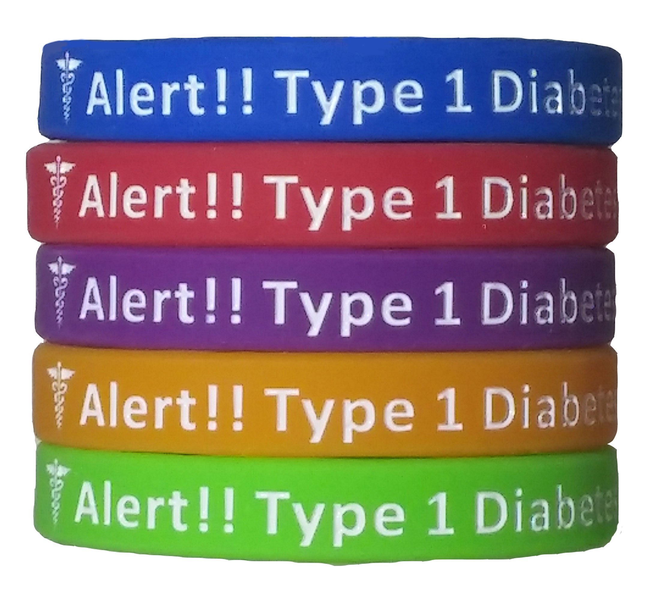 Type 1 Diabetes Bracelets Silicone Medical Alert Wristbands (Pack of 5) Adult Kids Sizes 5 Count (Pack of 1)