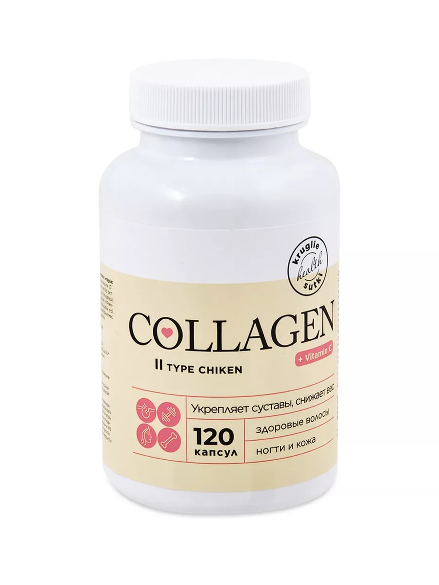 Collagen type 2 (capsules) 120 capsules. Hydrolyzed collagen, 100% natural product, contains type Ii collagen peptides, is easily absorbed. When taking collagen, joint mobility improves, improving the quality of life. Helps in normalizing weight and muscle mass. Collagen is a peptide responsible for maintaining beauty from the inside, strengthens hair and nails, transforms the skin, restores youth to your skin. Vitamin C strengthens the body's defenses, increases performance and reduces fatigue, improves condition. 120 gelatin capsules of 0.5 g. Store at a temperature not exceeding +25C and humidity no more than 70%. Hydrolyzed collagen, ascorbic acid (vitamin C), maltodextrin. Gelatin