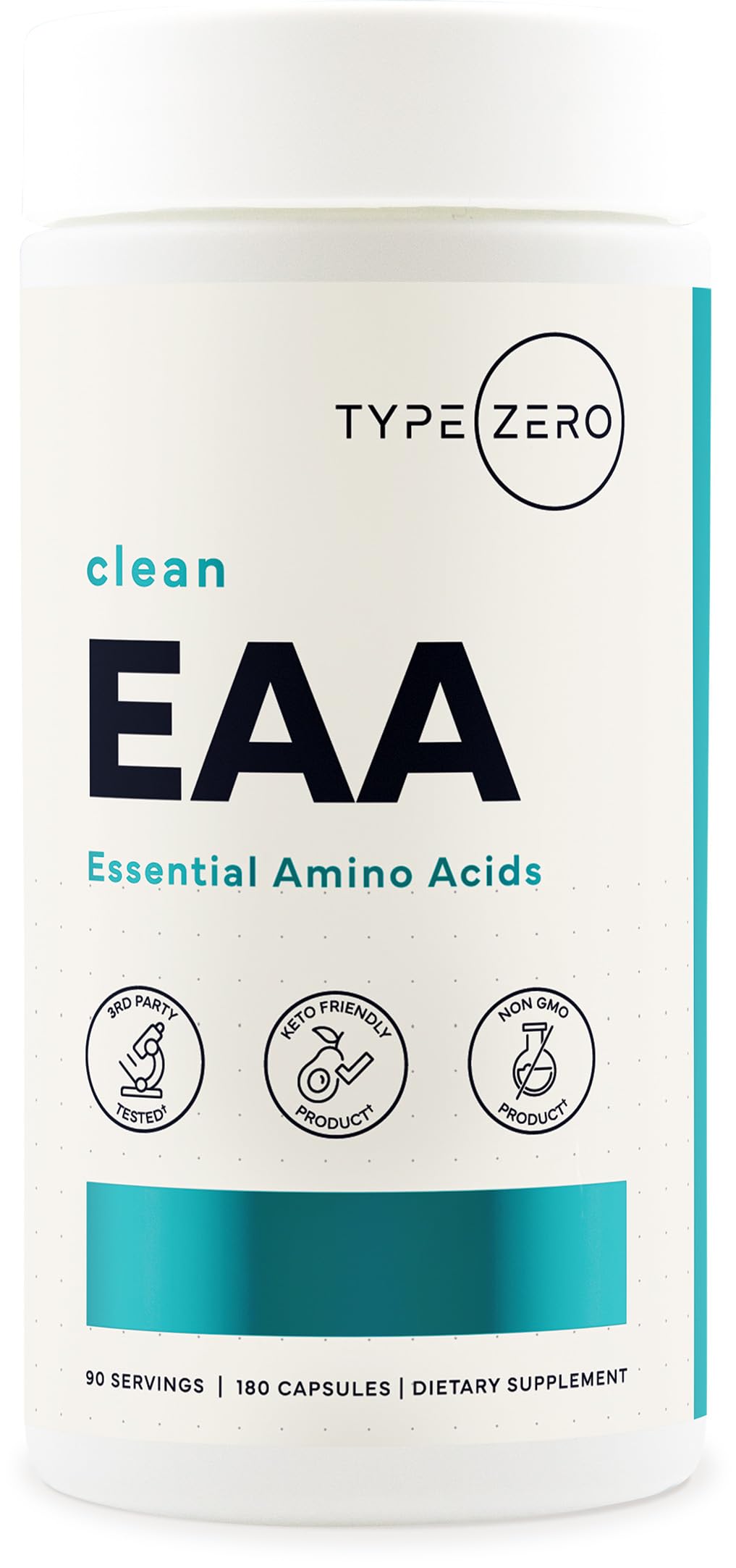 Type Zero Clean EAA Capsules provide all nine essential amino acids in a clean, convenient capsule format designed to support daily amino acid intake and overall nutritional balance. Each serving delivers 1,200mg of essential amino acids, including leucine, isoleucine, and valine, which the body cannot synthesize and must obtain through supplementation. This formula is ideal for individuals with active lifestyles, higher protein needs, or anyone looking for a simple way to complement their daily nutrition without powders or shakes. Made with easy-to-swallow capsules and no added sugars, artificial colors, or unnecessary fillers, Type Zero Clean EAA Capsules are manufactured in a GMP-compliant, FDA-registered facility and provide 180 capsules per bottle for a full 90-serving supply.Manufactured in an NSF Certified, GMP-compliant and FDA-registered facility and each batch of every product is tested by independent, ISO-accredited laboratories. Convenient Capsule Alternative to Powders: Ideal for anyone who prefers capsules over powders or shakes. No mixing, no mess, and easy to take at home, at the gym, or on the go. 1,200mg Per Serving – Clean Capsule Formula: Each serving delivers 1,200mg of essential amino acids in easy-to-swallow capsules with no added sugars, artificial colors, or unnecessary fillers. Supports Daily Amino Acid Intake: Formulated to help support daily amino acid needs, making it a convenient addition to your routine for those with active lifestyles. Complete 9 Essential Amino Acids Formula: Provides all nine essential amino acids, including leucine, isoleucine, and valine, which the body cannot produce on its own and must obtain from supplementation.