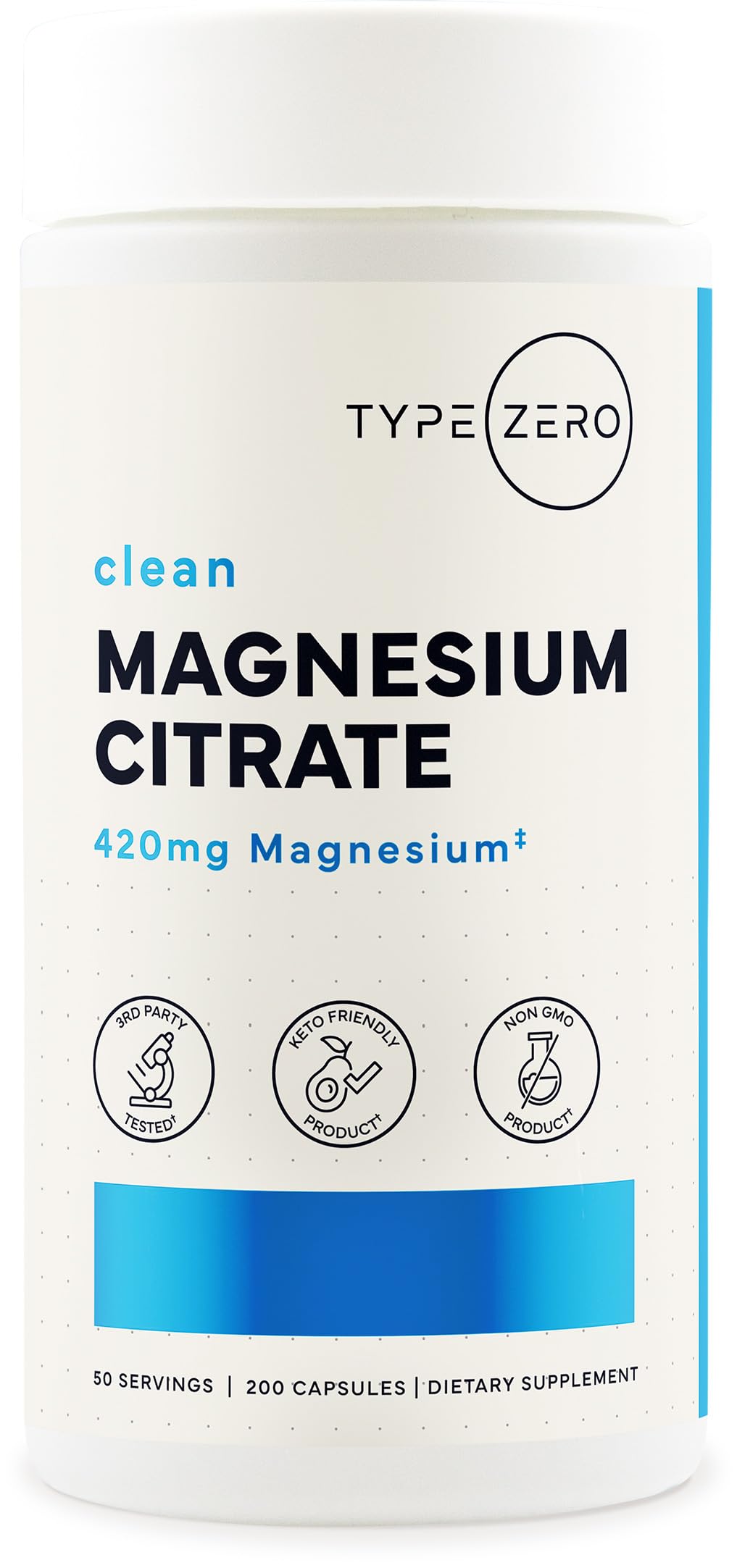 Type Zero Clean Magnesium Citrate Capsules (420mg Per Serving - 200 Capsules) Pure Magnesium Citrate Supplement Non-GMO - Gluten Free 50 Servings
