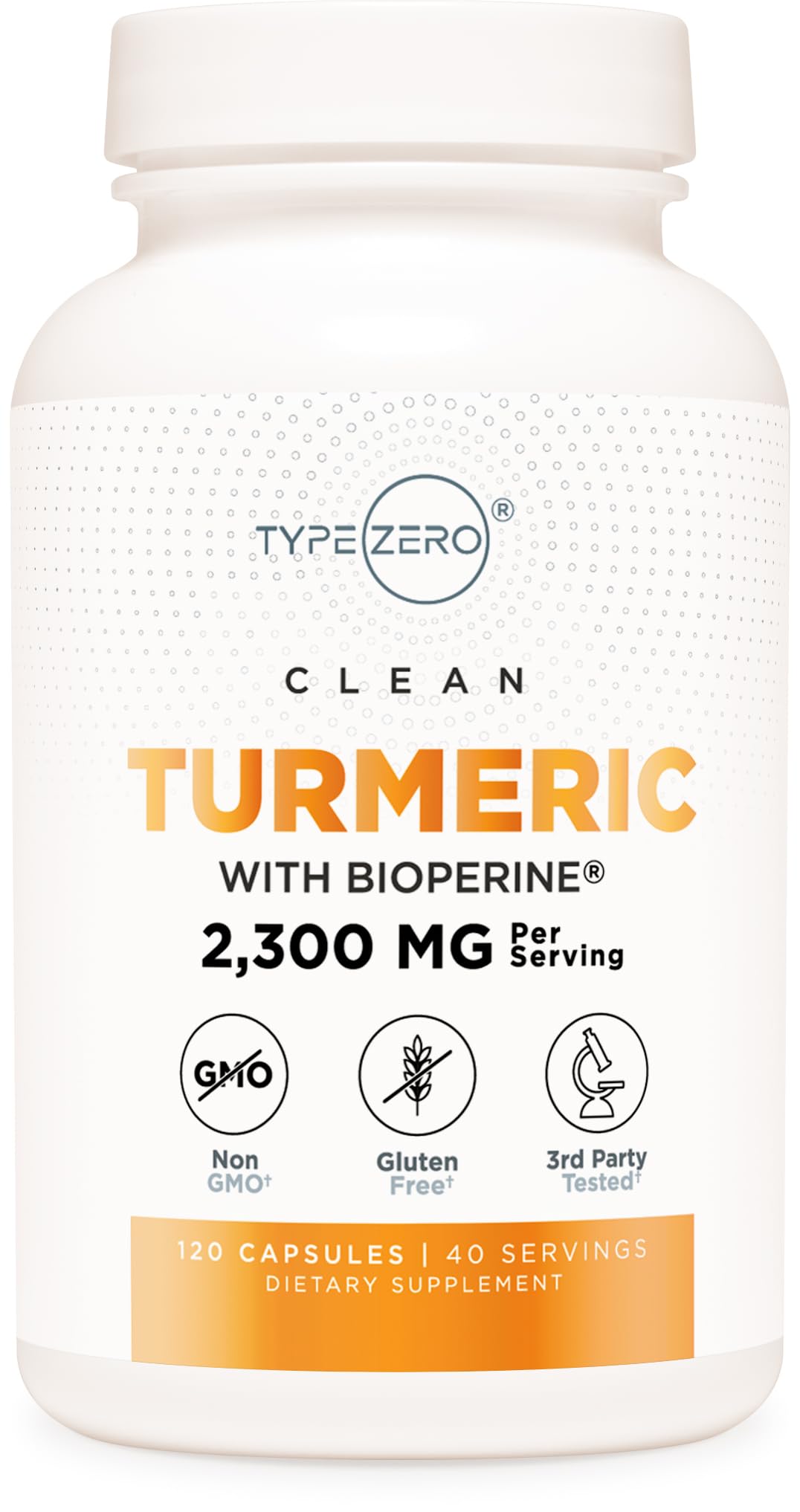 Type Zero Turmeric with Bioperine (120 Capsules) (2300mg per Serving) - GMO Free, Gluten Free, 3rd Party Tested