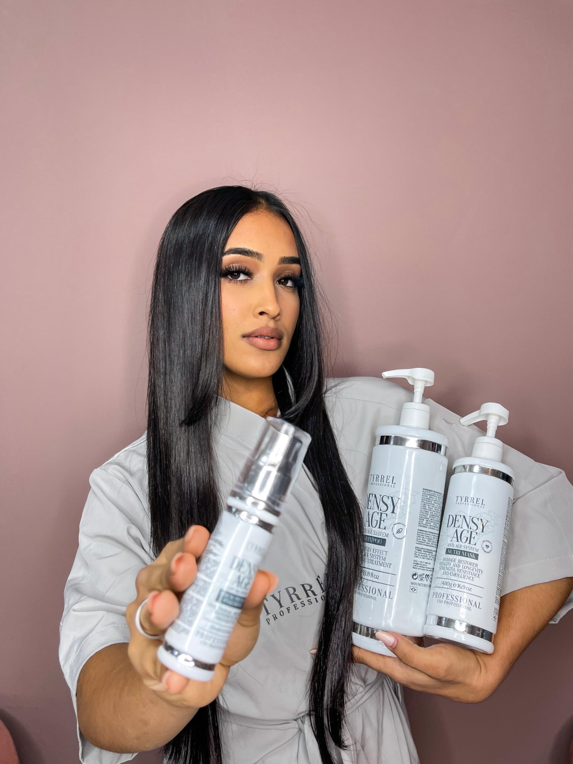 O Densy Age Shampoo is a regenerating shampoo for immediate recovery. It contributes to a longer lifespan and greater manageability during washing. Thanks to its biomimetic active ingredients, its remineralizing action minimizes damage, prevents dryness, and restores a longer lifespan. pH 4.5-5.0. This anti-aging hair treatment system promotes defense and antioxidant action against aging and photoaging of the hair fiber. It features an advanced and exclusive technology integrated with biomimetic repairing active ingredients. Through Amino Positive-Active technology, it repositions amino acids into polypeptide structures by weaving cortical and cuticular protein structures, uniformly repairing the hair fiber by promoting greater bioaffinity with the hair fiber. Repair mask against extreme damage, enriched with Amino Positive-Active, which promotes strength, resistance, and emollience. Thanks to its biorevitalizing agents (Goji Berry and ReparAge), it acts against photoaging, promoting longevity and preventing hair denaturation. Its anti-breakage action provides structural repair, addressing macro and micro-damage and forming a protective film against aggressive agents. INGREDIENTS • Anti-Aging Repair Complex: rich in amino acids and proteins, it promotes the defense and antioxidant action against photoaging of the hair fiber, preventing protein denaturation. Advanced and exclusive technology composed of biomimetic structural repair agents. • Glutamic acid: This is a natural component for hydrating the hair fiber. The amino acids bind to cortical cells, restoring protein bonds and promoting hair fiber lengthening. • Goji Berry extract: Exclusive low molecular weight technology that interacts with oxidative bonds, repairs the hair fiber, hydrates, restores shine, and protects against chemical damage. It possesses antioxidant properties that preserve the hair. • Shea butter: 100 plant-based and vegan, cold-pressed, rich in lipids important for intercellular repair of the hair fiber, oleic, palmitic, and linoleic acids, with high concentrations of vitamin E, important for anti-aging treatment promoting hair longevity. • Amino Positive Active: a structural amino acid complex that penetrates the cortex and atamina in all phases of the cuticle. • Vegetable Glycerin: emollient and moisturizing properties, making it suitable for the hair fiber. SAFETY WARNING Warranty and Liability Disclaimer: Although we work to ensure that the information provided by manufacturers is accurate, their ingredient lists may sometimes change. Packaging and materials may differ from the actual product and may contain different information than that shown on our site. We recommend that you rely on this information and promptly read the signs, warnings, and directions before using or consuming the product. For additional product information, contact the manufacturer. This site is for reference purposes only and is not intended to replace or advise a licensed medical, pharmacist, or other healthcare professional. You should not use this information for self-diagnosis or to treat a health or disease problem. Please note that your doctor may immediately suspect a medical issue. This information and statements about FDA-approved dietary supplements are intended to diagnose, treat, cure, or prevent health problems. assumes no responsibility for any inaccuracies or distortions regarding its products. See moreSerum with a hair protection system and high heat protection (230 C 450 F). Strengthens the cuticles and corrects imperfections. Its high fluidity minimizes and prevents double bonding while retaining moisture. It also provides photoprotection for the hair, contributing to shine and softness.LINHA DENSE AGE ANT AGE SYSTEM - TYRREL PROFISSIONAL- Shampooing régénérant, régénérant, restaure, avec protection thermique.DESCRIPTION DU PRODUIT DESCRIPTION DU PRODUIT O Densy Age Shampoo est un shampooing régénérant de récupération imediata. Contribui à une longue durée de vie de deux fios et une plus grande penteabilité pendant le lavagem. Com seus atifs biomimétiques, sua ação reminéralisante minimise les dommages, évite ou dessèchement et récupère à longue durée de vie deux fios. pH 4,5-5,0. Ou système de traitement capillaire anti-âge, favorise la défesse et l'acão antioxydant contre le velhéciment et le photoenvelhéciment donne de la fibre capillaire, une technologie avancée et exclusive intégrée par des atifs réparateurs biomimétiques. Atua à travers la technologie Amino Positive-Active – ne repositionne les acides aminés nacadeias polypeptidiques en tissant les strutures protéiques corticais et cuticulaires, réparant uniformément la fibre capillaire en favorisant la bioaffinité maior avec la fibre capillaire. Masque réparateur contre les dommages extrêmes enrichi par Amino Positive-Active qui favorise force, résistance et émoliência. Devido a seus atives biorevitalizantes (Goji Berry e ReparAge), atua contre ou photoenvelhecimento favorisant la longévité de deux fios et empêchant la dénaturation capillaire. Com ação anti-casse fournit une réparation struturale, des macro et des micro-dommages, formant un film protecteur contre les agents agressifs. INGRÉDIENTS • Complexo de Reparação Anti Age : riche en acides aminés et protéines, favorise la défesse et l'acão antioxydant contre ou l'envellissement de la fibre capillaire, empêchant la dénaturation des protéines. Technologie avancée et exclusive composée d'atifs réparateurs estruturais biomimétiques. • Acide glutamique : c'est un composant naturaliste pour hydrater la fibre capillaire, les acides aminés são carrés attachent les cellules corticais, restaurant les pontes protéiques, favorisant alongevidade de la fibre capillaire. • Extrait de Goji Berry : technologie exclusive de baixo poids moléculaire qui interage avec les ponts de danosoxydatifs, répare la fibre capillaire, hydrate,
