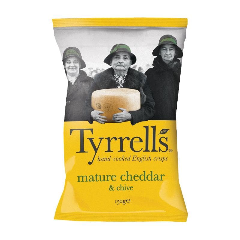 Tyrrells Crisps Mature Cheddar & Chive (150G X 3) | Handcooked IN SMALL BATCHES | Suitable for vegetarians | Gluten free