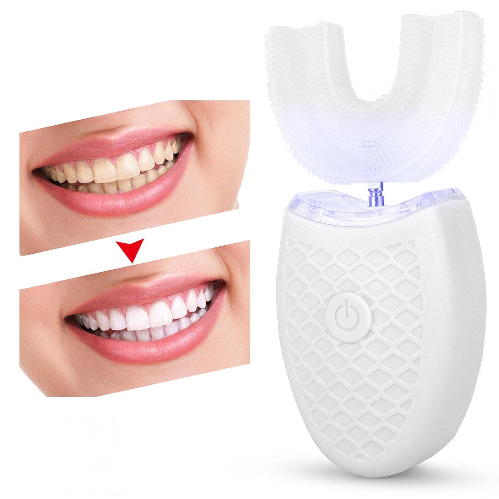Características: 1. Cepillo de dientes en forma u, en línea con la forma de la boca humana, usted puede cepillar sus dientes automáticamente presionándolo suavemente en la boca. 2. Material de silicona suave de grado alimenticio, no lastima los gums, cuidado de los dientes. 3. Limpieza sónica de luz azul potente, limpieza profunda, eliminación de placas y manchas. 4. Cuatro guantes son opcionales, puros de cepillo, cepillado cómodo, masaje de alta frecuencia, blanqueamiento de dientes, satisfacer sus diferentes necesidades. 5. El tiempo de carga es de menos de 90 minutos, después de la carga, se puede utilizar durante más de una semana, ahorro de energía y ecológico. 6. Diseño resistente al agua, se puede lavar con agua, sin fugas eléctricas, duradero. Feature: 1. U-shaped toothbrush, in line with the shape of the human mouth, you can brush your teeth automatically by gently pressing it in your mouth. 2. Food grade soft silicone material, it does not hurt your gums, care for teeth. 3. Powerful blue light sonic cleaning, deep cleaning, eliminate plaque and stains. 4. Four gears are optional, powerful brushing, comfortable brushing, high-frequency massage, whitening teeth, meet your different needs. 5. Charging time is less than 90 minutes, after charging, it can be used for more than one week, energy saving and eco-friendly. 6. Waterproof designs, it can be rinse with water, no electric leakage, durable. Specification: Condition: 100 Brand New Item Type: Electric Toothbrush Material: Food Grade Silicone Optional Color: White, Pink, Black Rated Voltage: DC3.7V Rated Frequency Conversion: 5000-15000 Rated Current: 1.6A Battery Type: Lithium Battery Battery Capacity: 450mAh Input Voltage: DC5V Package List: 1 x Toothbrush Main Machine 1 x Toothbrush Head 1 x USB Cable 1 x ManualENERGY EFFICIENT: Despite the high-performance functionality, this toothbrush is exceptionally energy efficient. A charge of less than 90 minutes powers the device for more than a week. This feature not only underlines the toothbrush's convenience but also showcases its remarkable energy-saving capability. MULTIPLE MODES: To cater to varied dental care needs, it offers four distinct operational modes: powerful brushing, comfortable brushing, high-frequency massage, and teeth whitening. These diverse settings provide you with a highly personalized dental care routine, delivering results that match your preference. ADVANCED CLEANING TECHNOLOGY: Boasting a powerful blue light sonic cleaning technology, it ensures deep, thorough cleaning that ordinary toothbrushes fail to achieve. With its ability to remove plaque and dental stains, it keeps your oral hygiene superbly maintained and your smile perfectly bright. SAFE COMFORTABLE: The brush is made from food-grade soft silicone, specifically chosen for its gentleness on gums. It adapts to the contours of your teeth and gums, preventing any damage or discomfort. Safety and comfort, therefore, merge harmoniously in this groundbreaking toothbrush design. INNOVATIVE DESIGN: This U-shaped electric toothbrush embraces the shape of your mouth. By simply pressing it into your mouth, it brushes your teeth automatically. The design not only promotes ease and convenience in toothbrushing but also ensures a comprehensive clean that manual toothbrushes struggle to match.