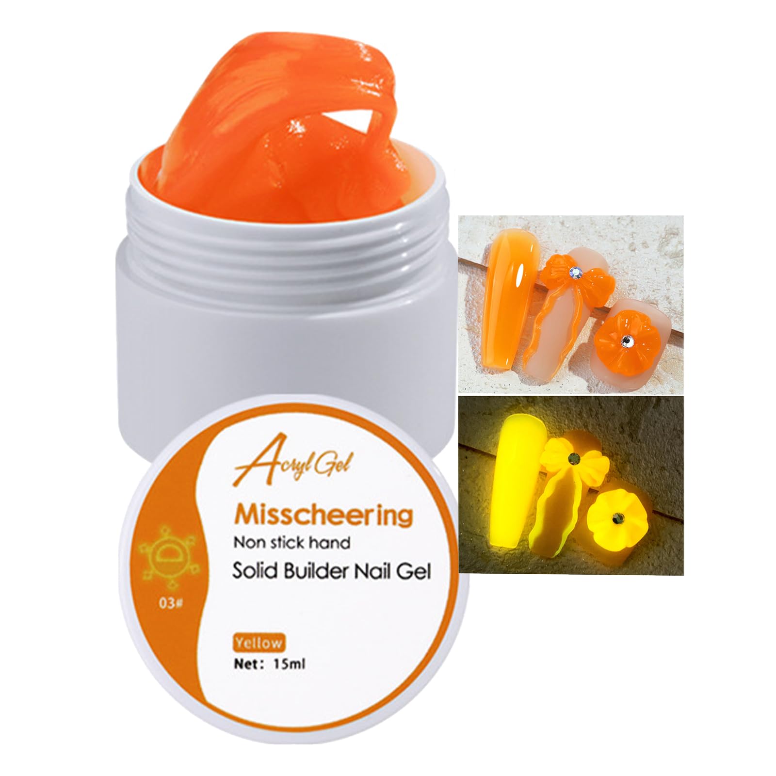 Specification: Name: Builder Gel Box contents: 1 x builder gel. Colour: 01 green, 02 blue, 03 orange, 04 red, 05 pink, 06 purple. Feature: The luminous builder gel can emit light in the dark, fashionable and beautiful. Suitable for holidays and activities such as Halloween, Christmas, parties and dances. Multiple colors are available, and different colors have different luminous effects to meet your various preferences. Suitable for home nail salons or nail salons, shiny, beautiful, and convenient, you can DIY your nails at any time. How to use: How To Extend 1. Take an appropriate amount of builder gel. 2. Spread the builder gel on the nail model. 3. Cover the dual form on the nails then cure 120s. 4. Remove the nail mould shape and trim the nails. How To Carve 1. Apply colour gel then cure. 2. Take a suitable builder gel and roll it into a small ball on the nail surface. 3. Shape the pattern with stick and decorate it then cure. 4. Apply top coat and cure for 90s. 3D silicone mould. 1. Take an appropriate amount of builder gel. 2. Put the builder gel into the mould and press on it to fit the mould, then cure 120s. 3. Take out the pattern when it is dry completely. 4. Stick the mould on the nail with glue. Note: 1.This product is external use only, don't eat. 2. Keep away from children and fire. 3.If allergic reactions are found, please stop using immediately. 4.If you have any dissatisfaction in the process of using it, please feel free to contact us.Easy to remove: the builder gel can be removed using nail file or using nail remover. You don't need to take it all off and start over, just polish and trim it start new design. Note: 1. When temperature is low, soak builder gel in warm water for few minutes 2. The temperature too high, builder gel has melted and is very sticky. Put it in refrigerator few minutes 3. If the coating is thick, please extend curing time and completely dry it. Easy to use: the builder gel is easy to apply and don't stick. It has good toughness, high strength, and high color display. It is not prone to yellowing, discoloration, or breakage, ensuring long-lasting and beautiful. Nail novices can also use it. Before use, please make appropriate preparations (such as cleaning and polishing nails) to keep builder gel on your nails a month or even longer. Multi-purpose builder gel: the builder gel is made of natural resin and healthy ingredients, which can keep your nails healthy and strong. You can use it to construct nails create perfect shapes, extend nails, also carve, decorate, and more. You can ly use this extended builder gel for 3D nail art design. Create patterns using silicone molds and process with nail powder. Luminous, dark bright: the builder gel has luminous effect, and different colours of gel will show different colours of light in the dark. You don't need to use extra luminous nail gel. While using it to the shape of your nails and extend them, it also has a luminous effect in dark. Let you fully enjoy the diverse nail art design. Luminous builder gel: the multifunctional builder gel with luminous effect can be nail extension gel. Not stick hand, easy to use solid building gel creates amazing nail art design anytime, anywhere. You can easily perform nail DIY at home. Solidify it with UV tools. It is sturdy, durable, stylish, and eye-catching, allowing you to fully bloom your charm on festivals and various activities.