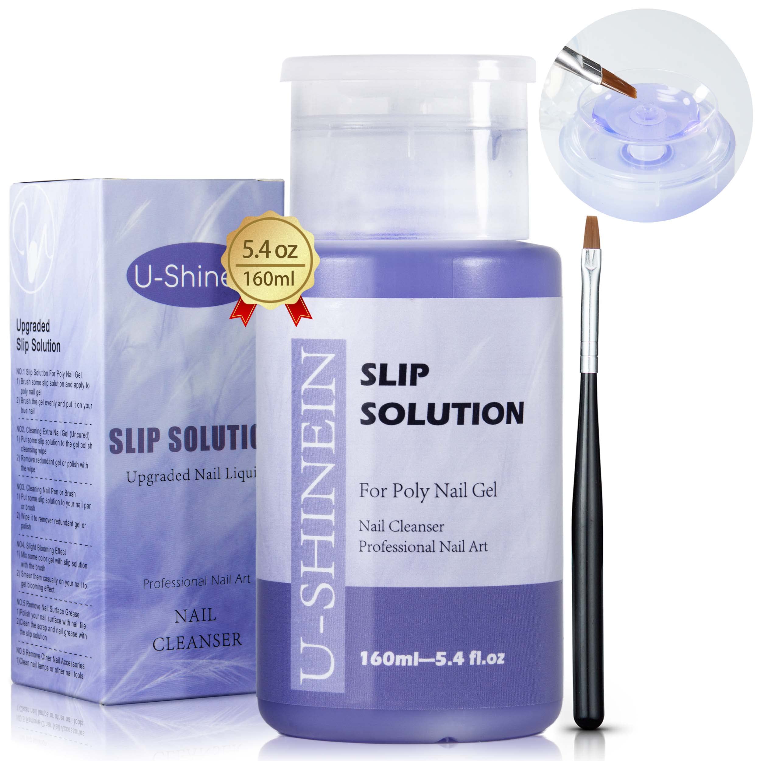U-Shinein Nail Slip Solution 160ml Poly Nail Extension Gel Slip Solution Anti-stick Polygel Solution Nail Cleanser Liquid for Polygel Soak-off DIY Salon Nail Art Manicure with Brush
