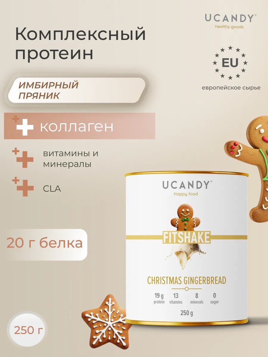 FITSHAKE - a protein shake for weight loss (gingerbread) - is whey protein with collagen and a vitamin complex, the perfect supplement for anyone striving for a perfect figure and looking to improve their diet. This protein shake for weight loss is ideal for women and men who exercise and want to burn fat or gain muscle mass. Use it as a weight loss shake or protein supplement and replace one meal, or supplement your regular diet to gain muscle mass. This complex shake differs from most similar products on the market because it contains collagen and biotin, which helps strengthen connective tissue, improve hair and skin, making it smooth and radiant, and strengthen nails. The advantage of our shake is its high protein content and unique low-calorie composition, containing collagen, as well as vitamins and minerals. Flavors range from chocolate and vanilla to salted caramel. Saturates the body with amino acids for rapid recovery, effective muscle growth, and fat burning. Contains casein and whey proteins, as well as milk protein concentrate. Contains a vitamin premix - vitamins B, A, C, D3, and vitamin E, as well as biotin, inulin, and L-carnitine. Contains green tea extract and CLA, which promotes metabolism and weight loss. Contains whey protein isolate. Collagen is included for healthy joints and cartilage. It maintains skin elasticity and beautiful hair and nails. Thanks to the content of collagen hydrolysate, it strengthens tissues and improves skin elasticity. This is important for those who want to maintain their beauty and youth. Our product is suitable for anyone looking to supplement their diet. Thanks to its unique composition and collagen, it improves metabolic processes and slows down cellular aging. Add to various smoothies and porridges, and is suitable for making pancakes. The smoothie is sugar-free, making it ideal for those who care about their health. Add one scoop of powder to milk, yogurt, or muffin mix for a healthy and delicious shake. Yukendi, a vitamin-rich shake, is ideal for anyone who cares about their health, beauty, and fitness. It will help you achieve your fitness goals by providing essential nutrients for burning fat, losing weight, or gaining muscle mass. It's also ideal for those looking to strengthen their joints. This isn't just a powder; it's a supplement that supports the body's energy and vitality. How to prepare: Pour 200-250 ml of liquid and add 1 scoop, or 2 scoops per 350-400 ml. Shake well. Contains lecithin for weight loss. Yukendi is the best shake for weight loss. Flavors include pistachio ice cream, pistachio, and ice cream. You may have been looking for: protein, protoin.