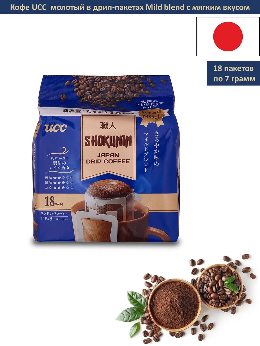 UCC Кофе молотый Mild blend в дрип пакетах с мягким вкусом 18*7г