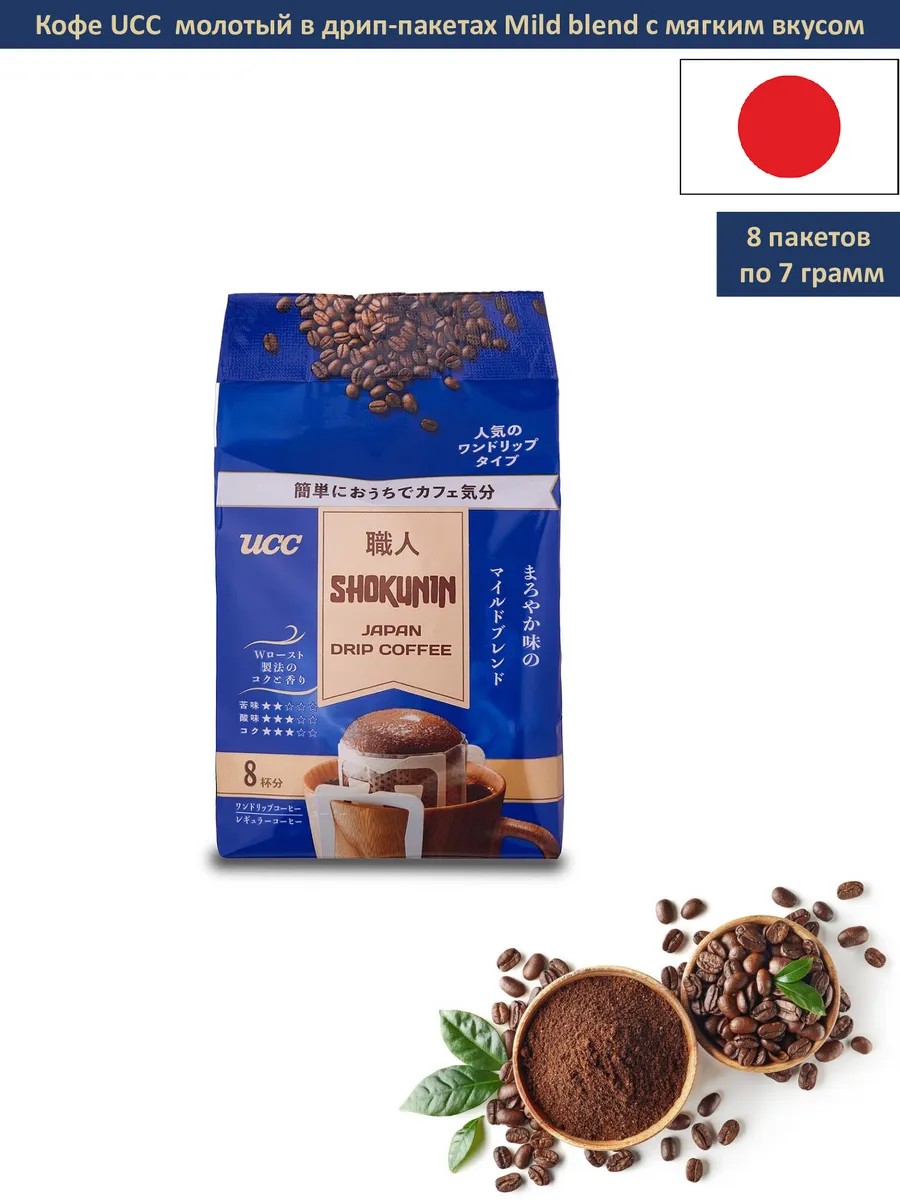 UCC Кофе молотый Mild blend в дрип пакетах с мягким вкусом 8*7г