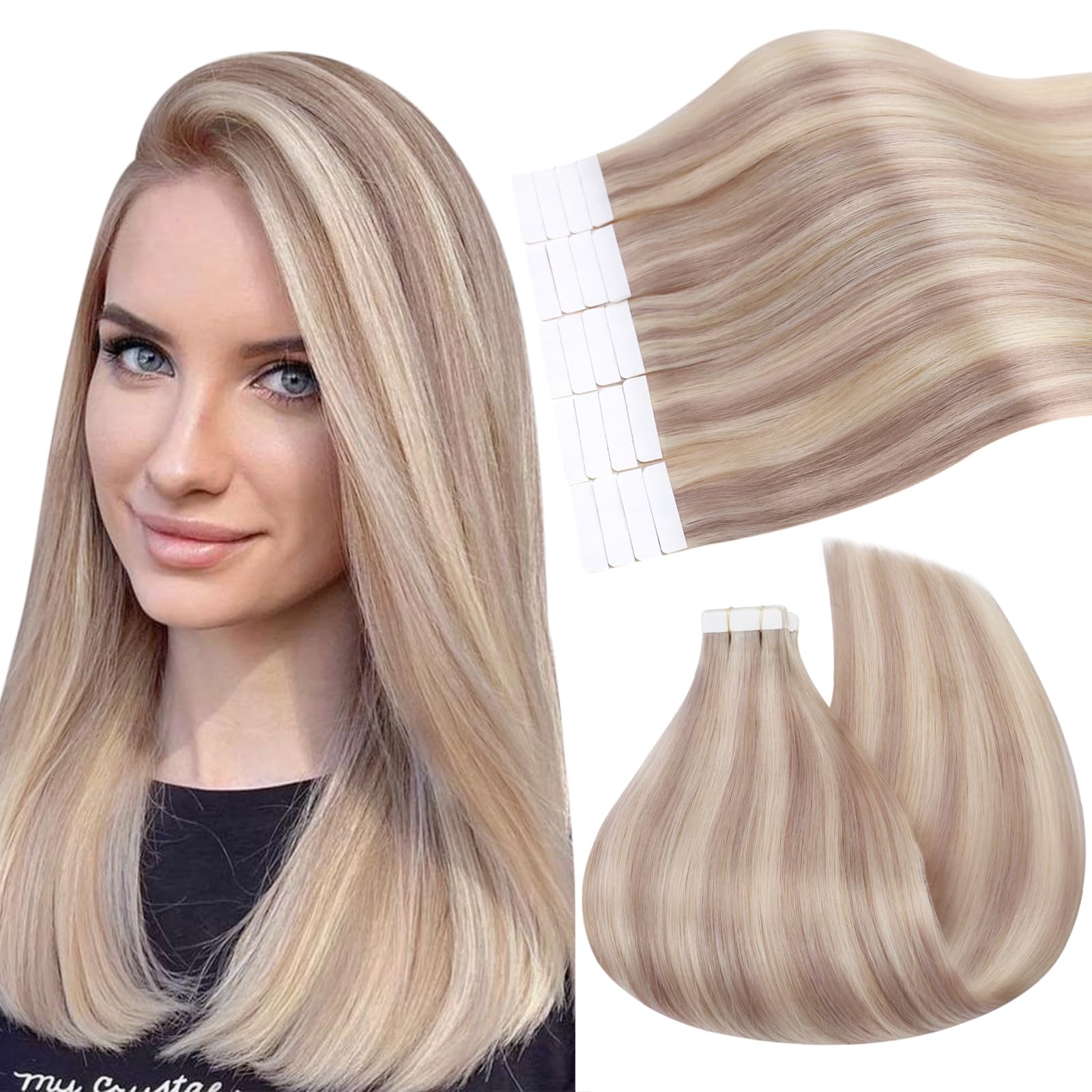 ? ? Nobody will find your secret, best choice for salon, party, wedding, graduation.Tape in is a popular way to add volume, we understand that sometimes things don't run as planned.Replacement hair promised if you have hit any problems with UGEAT hair.?About caring? Please use mild shampoo to wash your hair and of course let the hair dry.Since hair extensions cannot absorb the nutrients like our own hair, apply the conditioner to your tips to keep the hair shiny and silky.?Advantage? Tapes consist of American white ribbon so that they are strong and hypoallergenic.And adhesive tape in extensions are very flat, which overall leads to a more natural look when installed.They are a quick and easy option that leads to a very natural look, and nobody will ever guess that they have a hair extension!.?Specification? Cinderella highlighted tape in hair extensions is 12-24 inches, 20 pieces per pack.12 inches weighs 30g, 14-24 inches weighs 50g.Depending on the length, each piece weighs between 1.5 and 2.5 g, so that it does not feel difficult or slide down.They work well if you have fragile or damaged hair.We recommend using 3-4 packs of adhesive tape in hair extensions for a full head that is 150 to 200 grams of hair.?Haar material? UGEAT hair extensions consist of 100% real human hair, no synthetic hair or animal hair.So after installation it will be as soft and complicated as your own hair.As long as you maintain it properly, the hair can be used for a long time.??Niemand wird Ihr Geheimnis finden, beste Wahl für Salon, Party, Hochzeit, Abschluss. Tape Ins ist eine beliebte Möglichkeit, Volumen hinzuzufügen, wir verstehen, dass manchmal Dinge nicht wie geplant laufen. Ersatzhaar versprochen, wenn Sie irgendwelche Probleme mit Ugeat Haar getroffen haben. ?Über Caring?Bitte verwenden Sie mildes Shampoo, um Ihr Haar zu waschen und lassen Sie das Haar natürlich trocknen. Da Haarverlängerungen die Nährstoffe nicht wie unser eigenes Haar aufnehmen können, tragen Sie den Conditioner auf Ihre Spitzen auf, um das Haar glänzend und seidig zu halten. ?Vorteil?Bänder bestehen aus amerikanischem weißem Band, so dass sie stark und hypoallergen unsichtbar sind. Und Klebeband in Verlängerungen sind sehr flach, was insgesamt zu einem natürlicheren Aussehen führt, wenn installiert. Sie sind eine schnelle und einfache Möglichkeit, die zu einem sehr natürlichen Look führt, und niemand wird jemals erraten, dass Sie eine Haarverlängerung tragen!. ?Spezifikation?Aschenblond hervorgehoben Tape in Haarverlängerungen sind 12-24 Zoll, 20 Stück pro Packung. 12 Zoll wiegt 30g, 14-24 Zoll wiegt 50g. Je nach Länge wiegt jedes Stück zwischen 1,5 und 2,5 g, so dass es sich nicht schwer anfühlt oder herunterrutscht. Sie funktionieren gut, wenn Sie brüchiges oder beschädigtes Haar haben. Wir empfehlen die Verwendung von 3-4 Packungen Klebeband in Haarverlängerungen für einen vollen Kopf, der 150 bis 200 Gramm Haar beträgt. ?Haarmaterial?Ugeat Haarverlängerungen bestehen aus 100% echtem Menschenhaar, kein synthetisches Haar oder Tierhaar. So wird es nach der Installation so weich und verwickelungsfrei wie Ihr eigenes Haar sein. Solange Sie es richtig pflegen, kann das Haar lange Zeit verwendet werden.Ugeat Tape Extensions Echthaar Blond Highlights Tape Extensions Echthaar Aschblond Tape Extensions Echthaar Remy Hair Extensions 20 Stück 35 cm 40 Gramm #18/613 35 cm #18/613