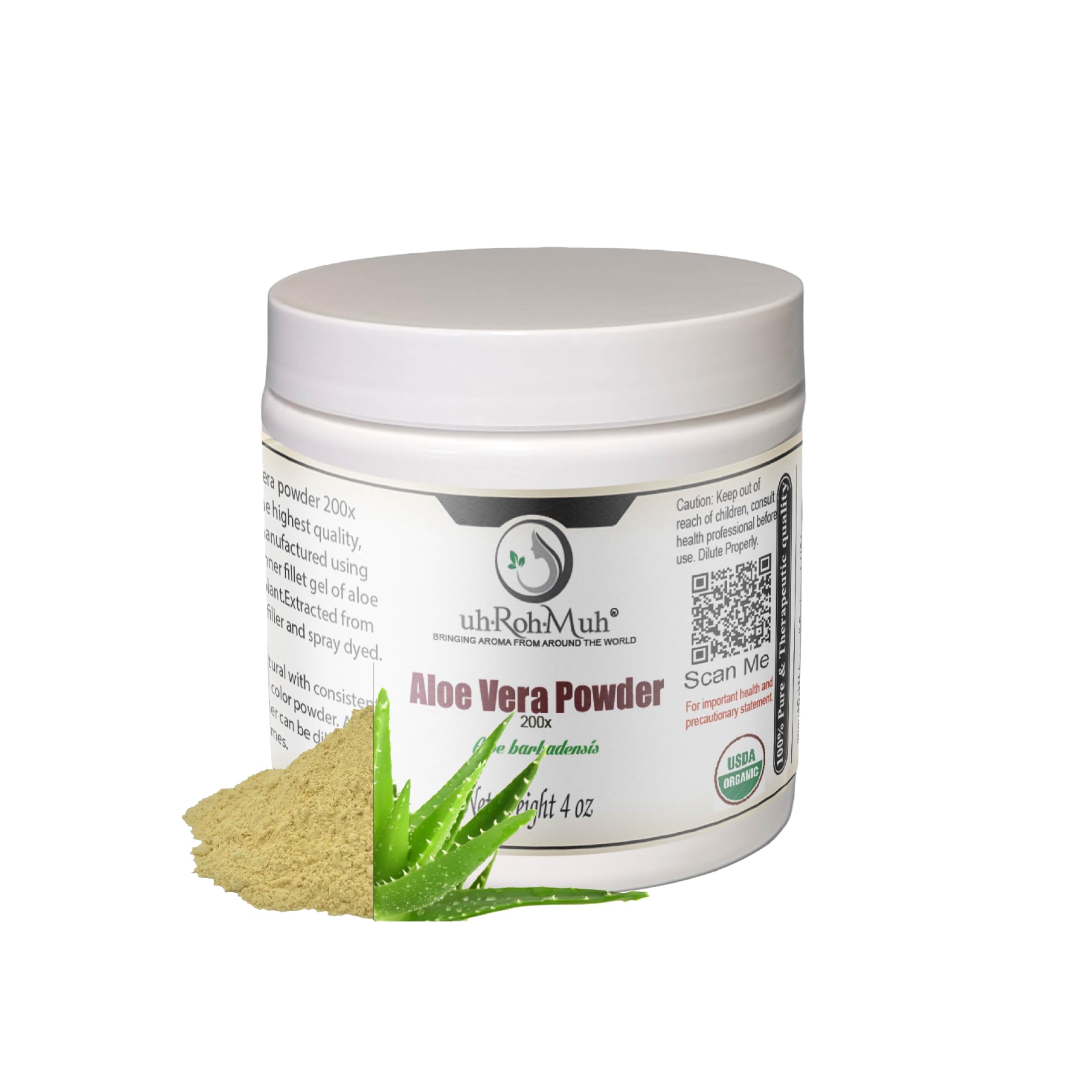 uh*Roh*Muh Organic USDA Certified Aloe Vera Powder 200X Concentrate Pure Aloe Barbadensis Inner Leaf Spray Dried Water Soluble Cosmetic Grade for Skincare Haircare Food & Beverage Use - 4 oz 4 Ounce (Pack of 1)